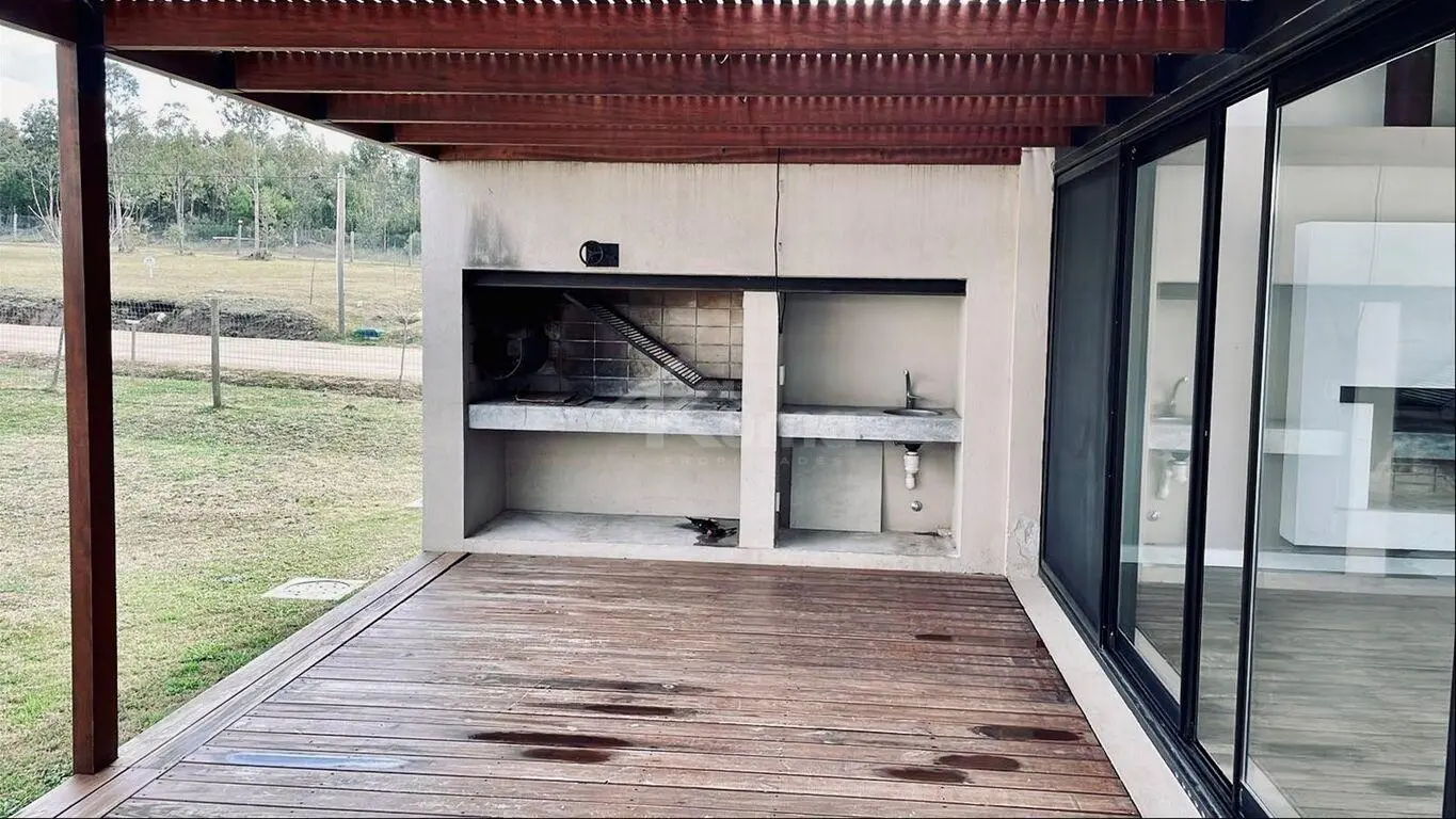 Se ingresa a un hall de entrada que a mano derecha nos lleva al living-comedor con estufa a leña que tiene ventanales al fondo que comunican con el deck del parrillero.
