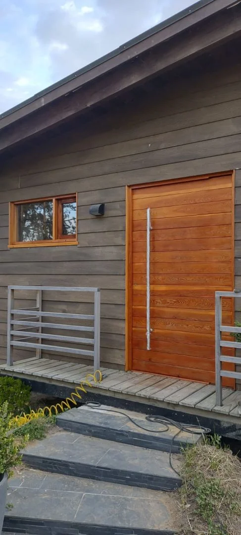 Se alquila por temporada, hermosa y cómoda cabaña de 2 dormitorios y 2 baños, en Parque del Plata, para 4 personas. Cabaña muy segura, totalmente de madera muy bien trabajada, completa, con todo el mobiliario y electrodomésticos para tener un muy buen descanso, tranquilo y con todas las comodidades y confort necesario.
