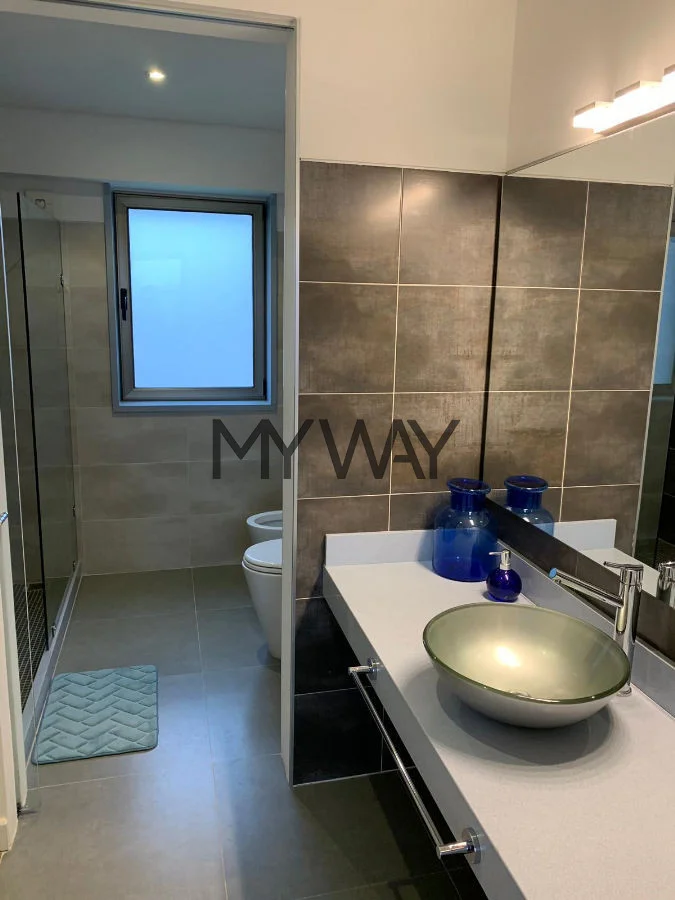Suite principal con gran vestidor y buen baño con lavabos dobles.