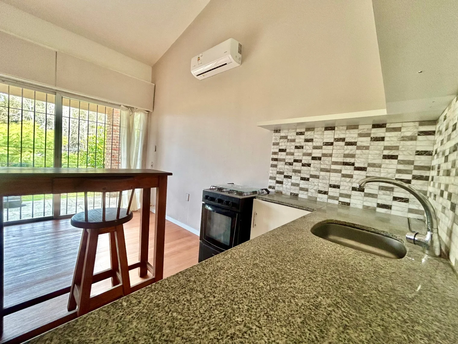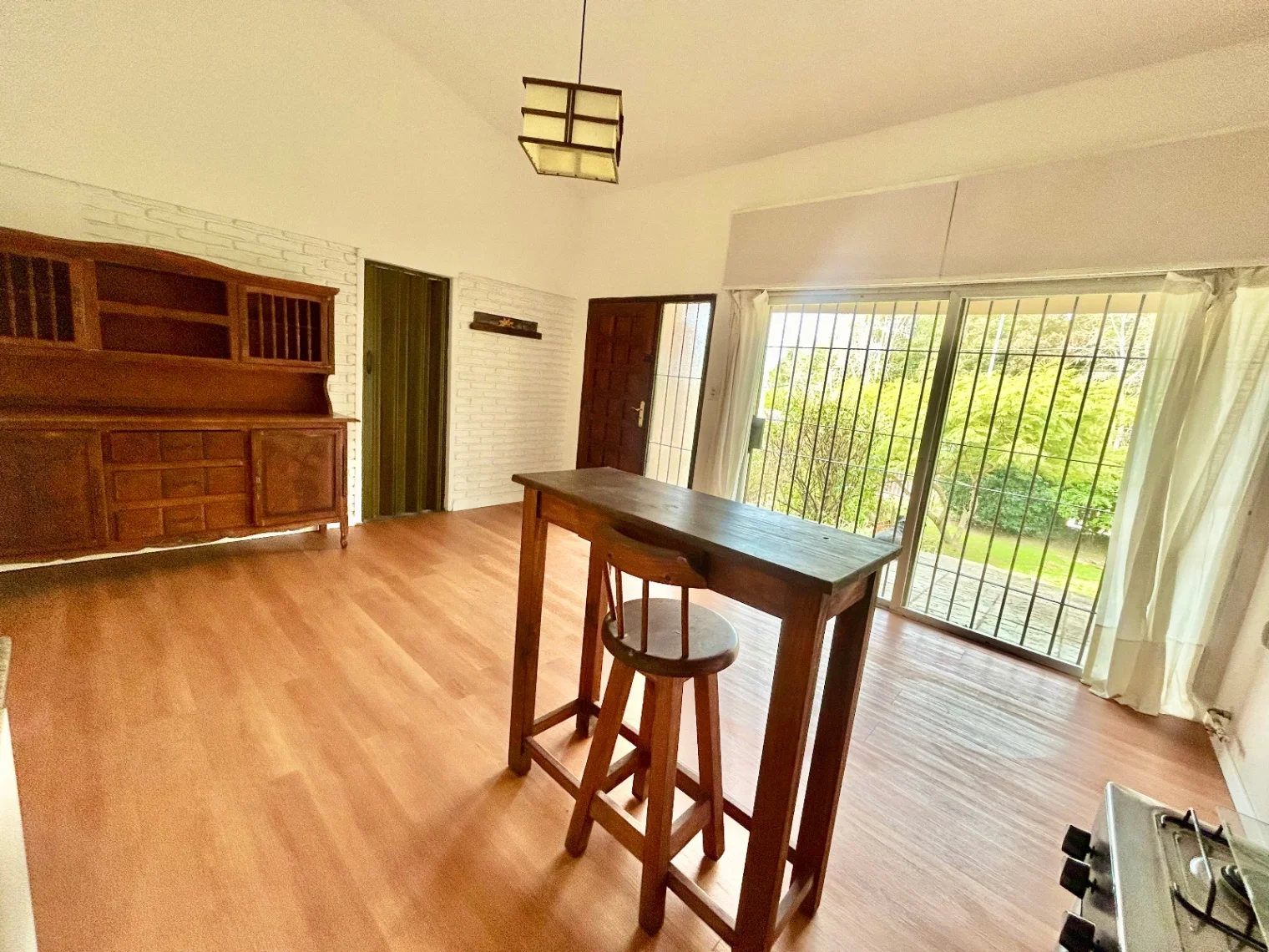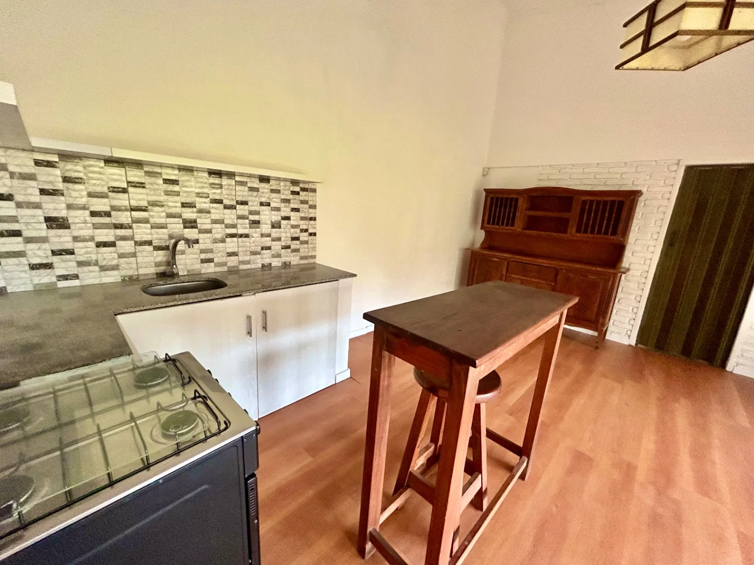 El inmueble cuenta con un ambiente principal que incluye un dormitorio equipado con estufa de hierro y placard empotrado. Cuenta con un baño completo. La cocina integrada, que se complementa con un desayunador, se integra perfectamente con el living comedor, creando un área social ideal para disfrutar de momentos en familia. Además, la orientación sur permite una excelente iluminación natural a lo largo del día.