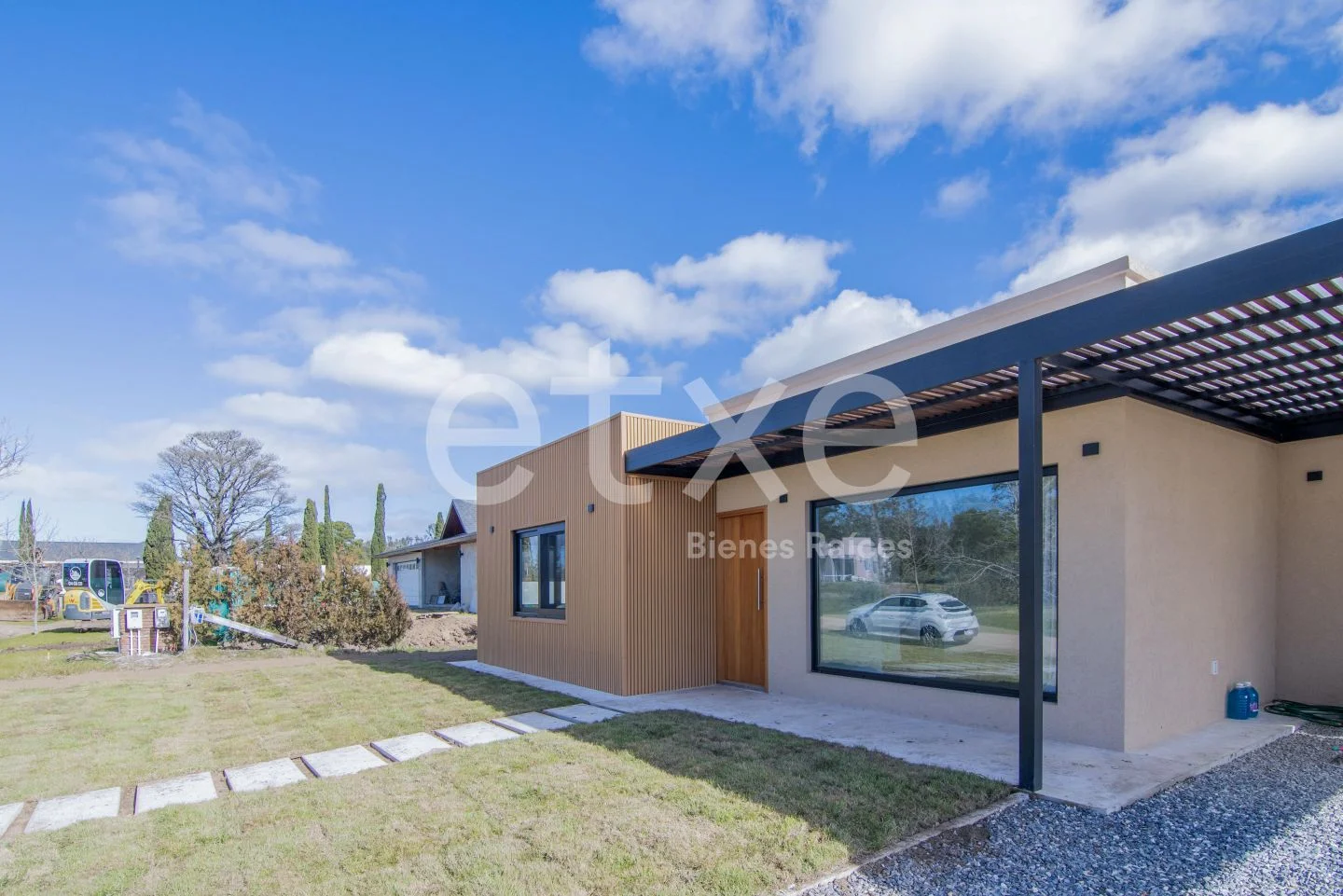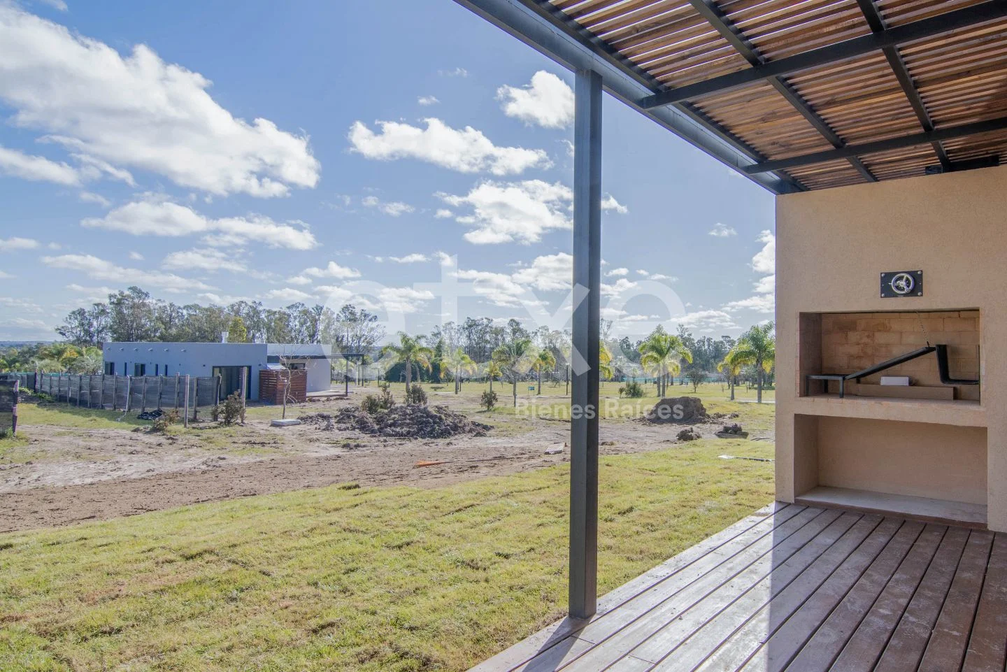 Pérgola con parrillero y jardín. Se colocará una piscina en el jardín.