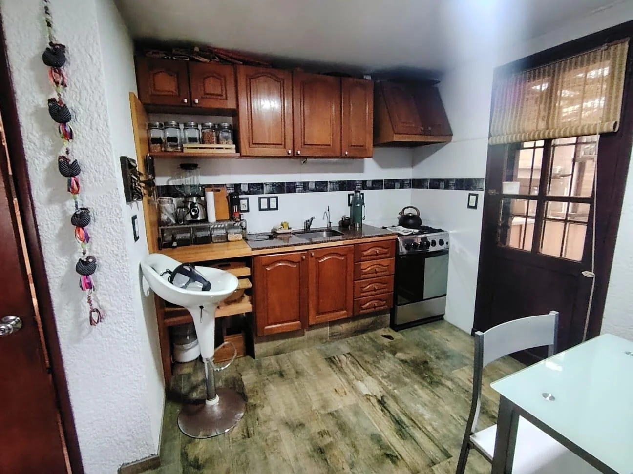 -Cocina Completa con campana de extraccion, muebles de madera aéreos y bajo mesada.
