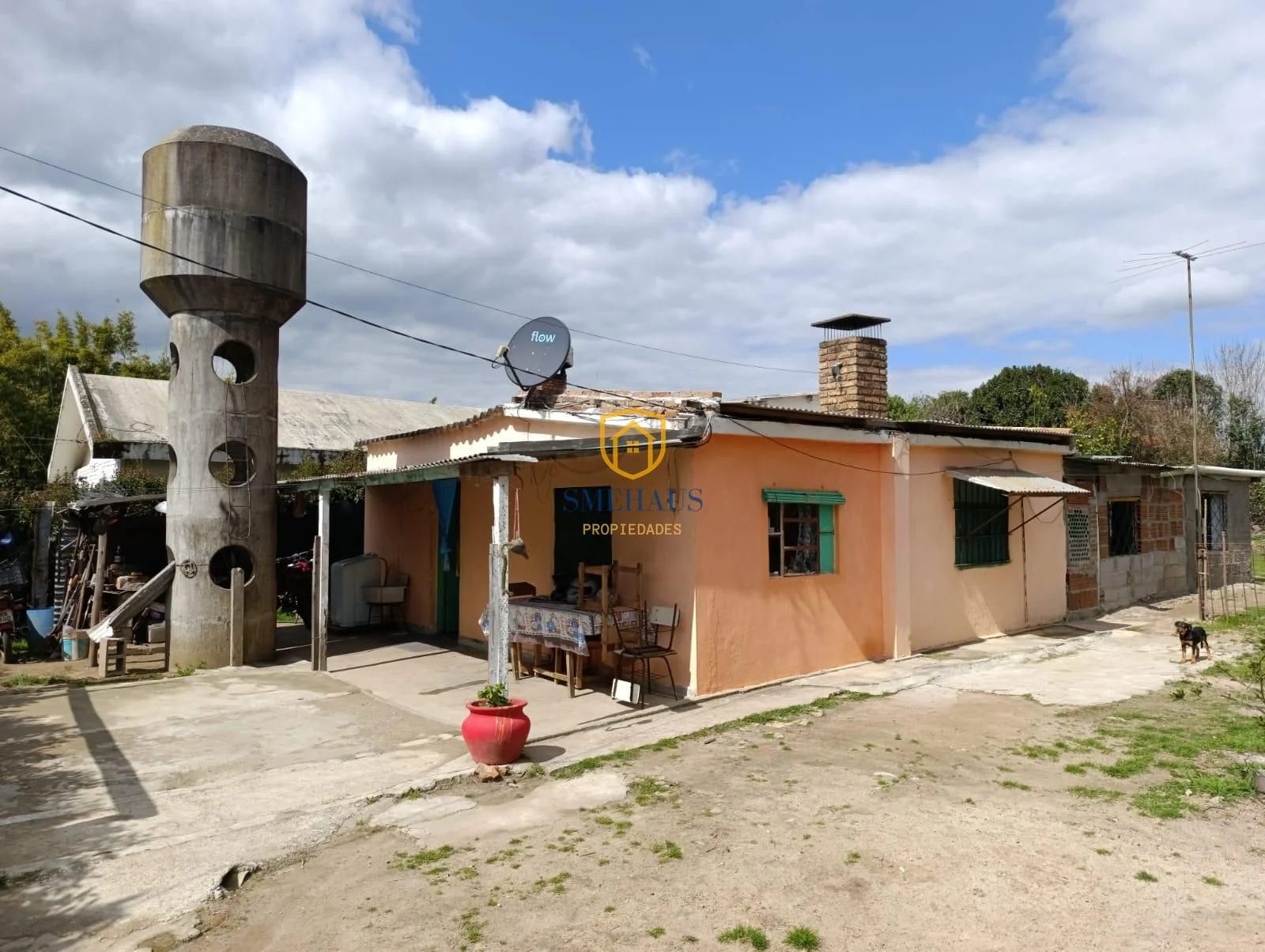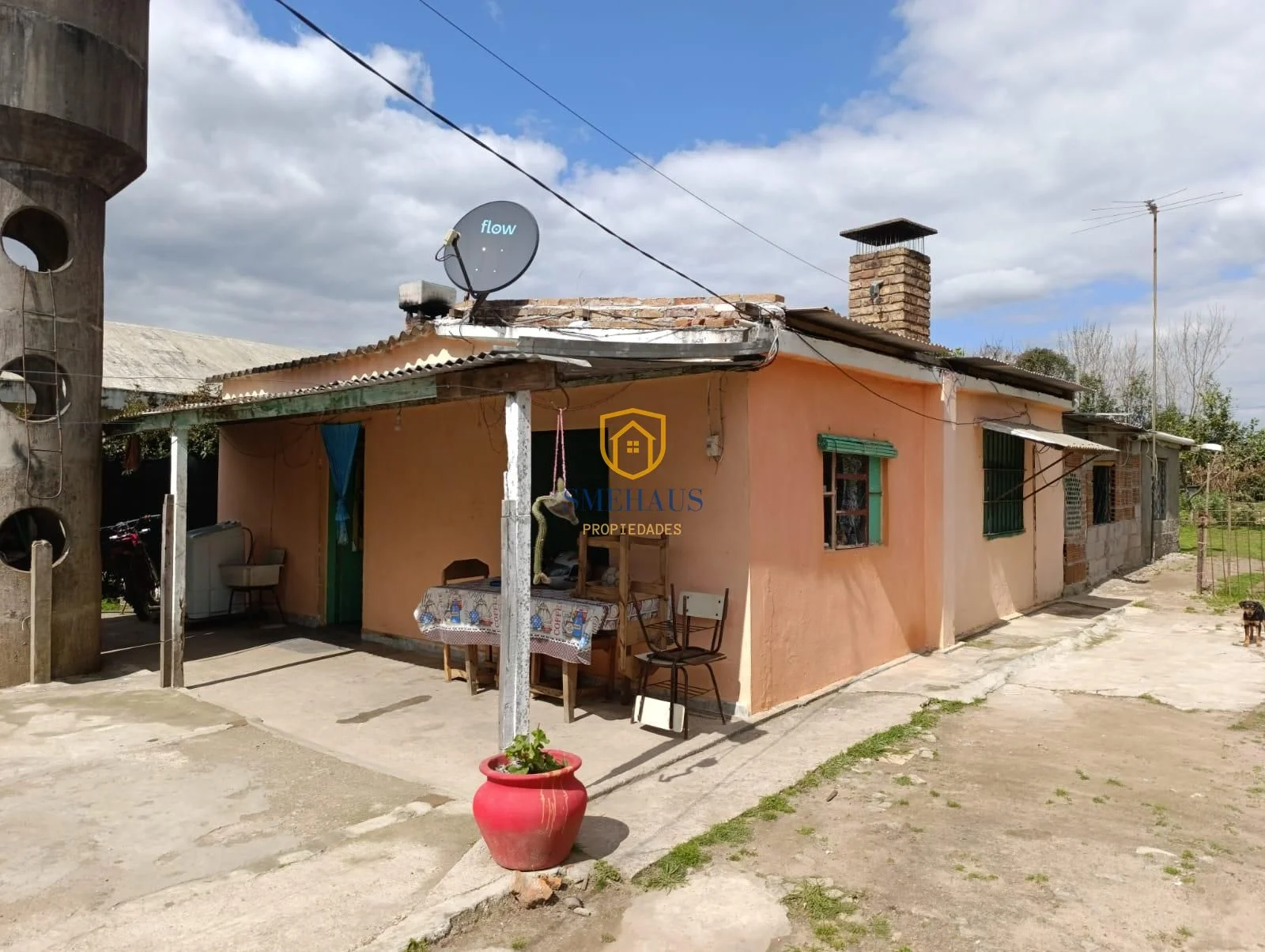 La casa cuenta con una sólida construcción de aproximadamente 50 años, orientada al oeste, permitiendo disfrutar de la luz natural durante gran parte del día. El interior se distribuye en 6 ambientes, que incluyen 3 acogedores dormitorios, un baño, y una cocina funcional. Además, el espacio exterior está adornado con árboles frutales, creando un ambiente agradable y fresco.