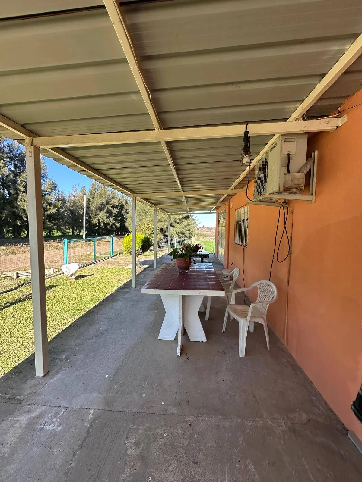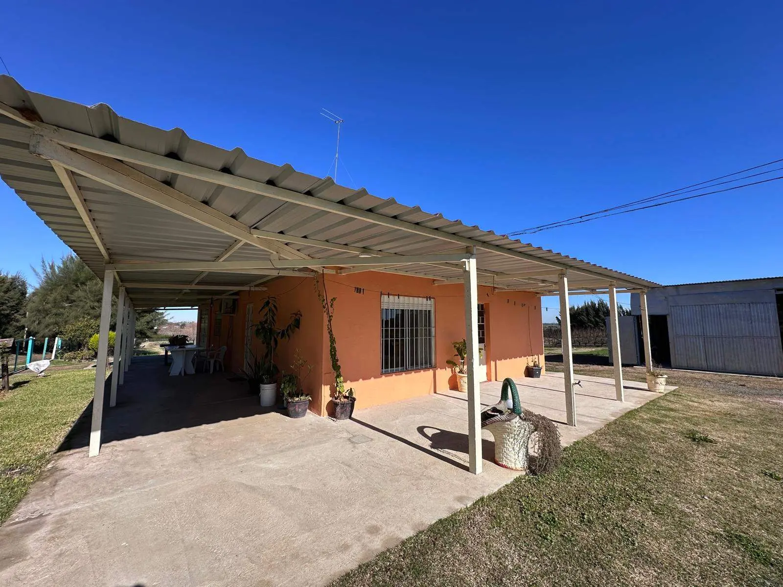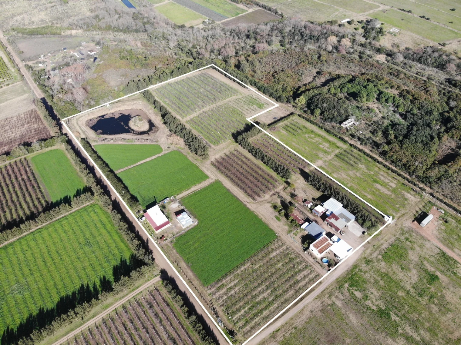 La propiedad también incluye un predio sombreado, perfecto para un salón de fiesta o como estancia turística. Un tajamar con piezas y un sistema de riego complementan las instalaciones. La superficie total es amplia, permitiendo diversas posibilidades de uso y desarrollo.