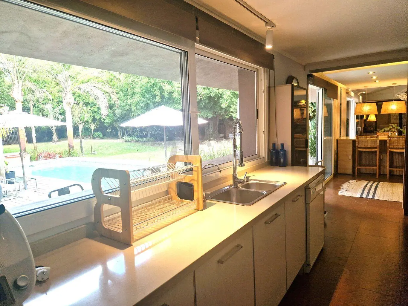 Barbacoa muy grande con parrillero, cocina, estar, baño y salida al deck. Aires acondicionados en todos los ambientes.