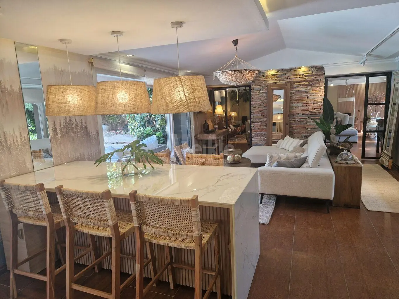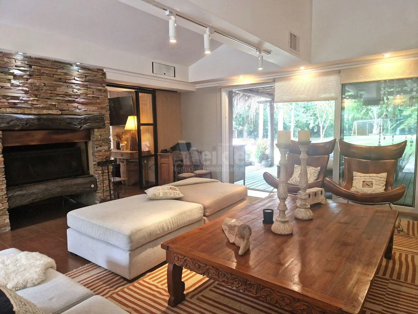 Con 563 metros construidos distribuidos de esta manera: Hall de entrada. Estar con isla comedor integrada a la cocina. Living con estufa a leña y salida al jardin con grandes ventanales. Cocina. Lavadero. Estar intimo en el area de los 3 dormitorios. Los dormitorios con hermosas vistas al jardin.. El principal en suite con vestidor. Otro baño completo. Toilette. Servicio completo. Losa radiante con bomba de calor.