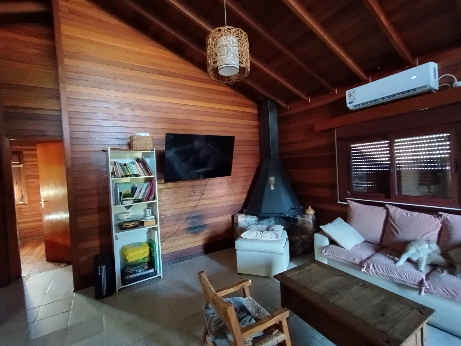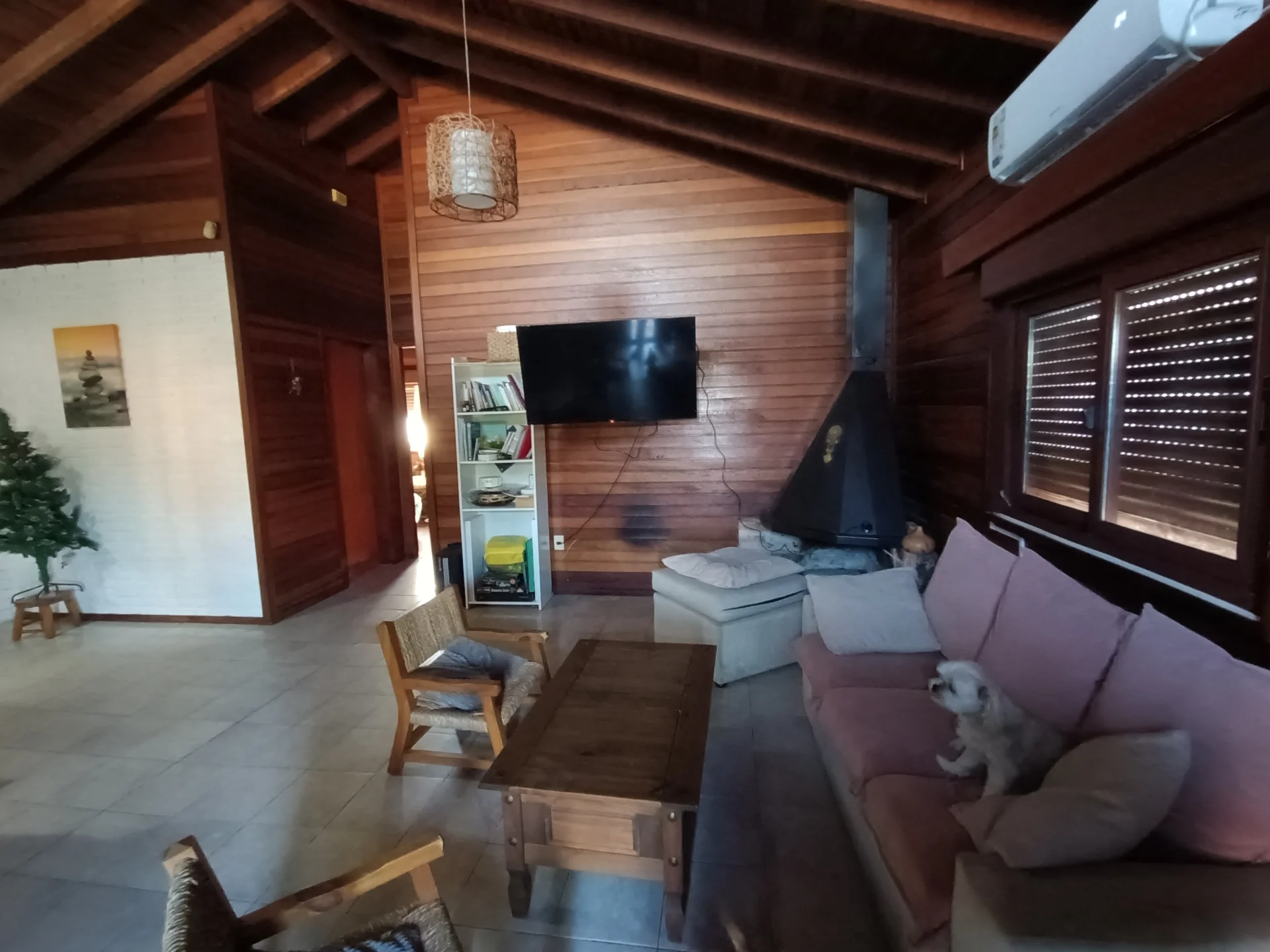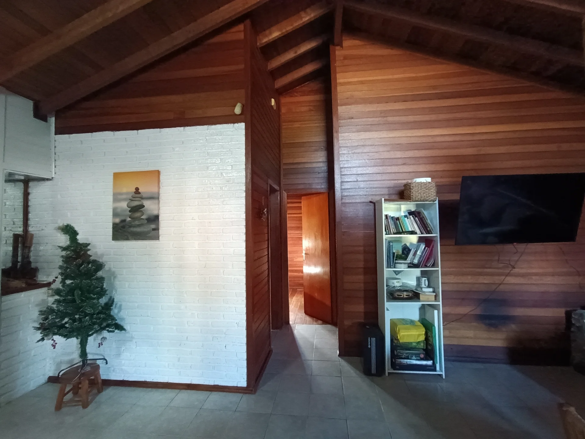 Descubra esta encantadora cabaña en venta, una propiedad de estilo rústico que promete tranquilidad y confort. con tres dormitorios espaciosos un living acogedor con estufa a leña y una calidez que da la madera combinada con pared de ladrillos. Este hogar de un solo piso es perfecto para quienes buscan un refugio acogedor con carácter. Su diseño atemporal y funcionalidades bien pensadas la convierten en una opción ideal para disfrutar de la vida en un entorno sereno. La propiedad se distingue por su fachada de madera oscura y un diseño de techo a dos aguas, complementado por exuberantes zonas verdes. Disfrute de un jardín delantero cercado con arbustos ornamentales y senderos de baldosas de terracota; Una ventilación natural asegura un ambiente fresco y agradable. Entre sus características clave, la casa ofrece una atractiva terraza cubierta, una piscina y una gran barbacoa para disfrutar de las reuniones y los eventos al aire libre en cualquier momento. Esta propiedad NO ACEPTA BANCO