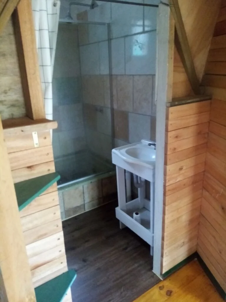 Por ultimo al otro lado, también en el fondo se encuentra el Bungalow de unos 15m2 en altura, el mismo quedo como un monoambiente con baño completo y deposito o dormitorio superior para una persona. En la parte exterior debajo del bungalow, queda un espacio que se puede utilizar como comedor, estar o jardín en verano.