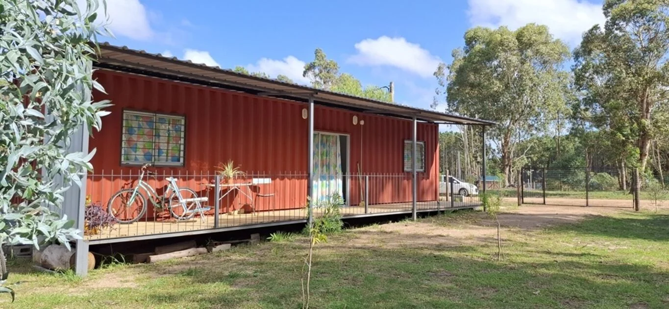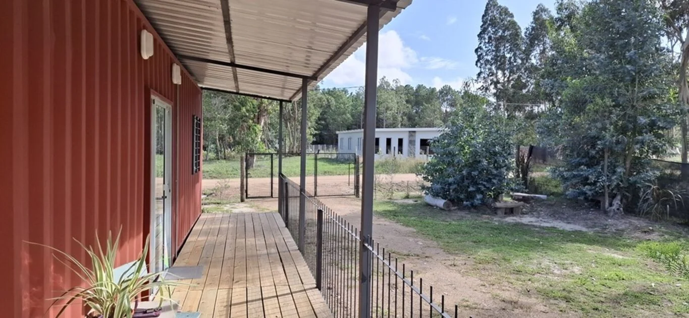 Además tiene un sobre techo de chapa para darle mayor protección y a su vez forma un amplio porche del largo del contenedor, con piso de madera,
