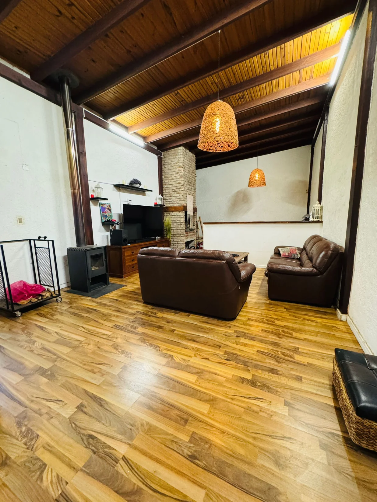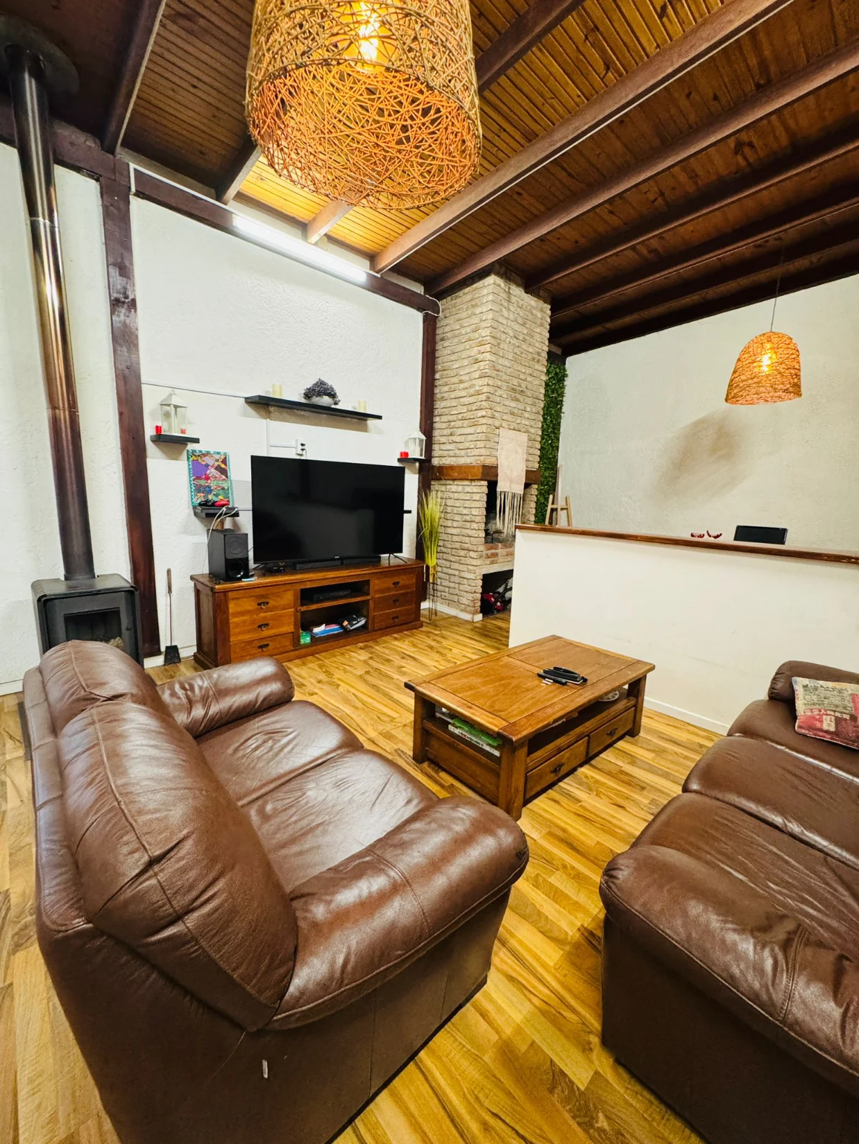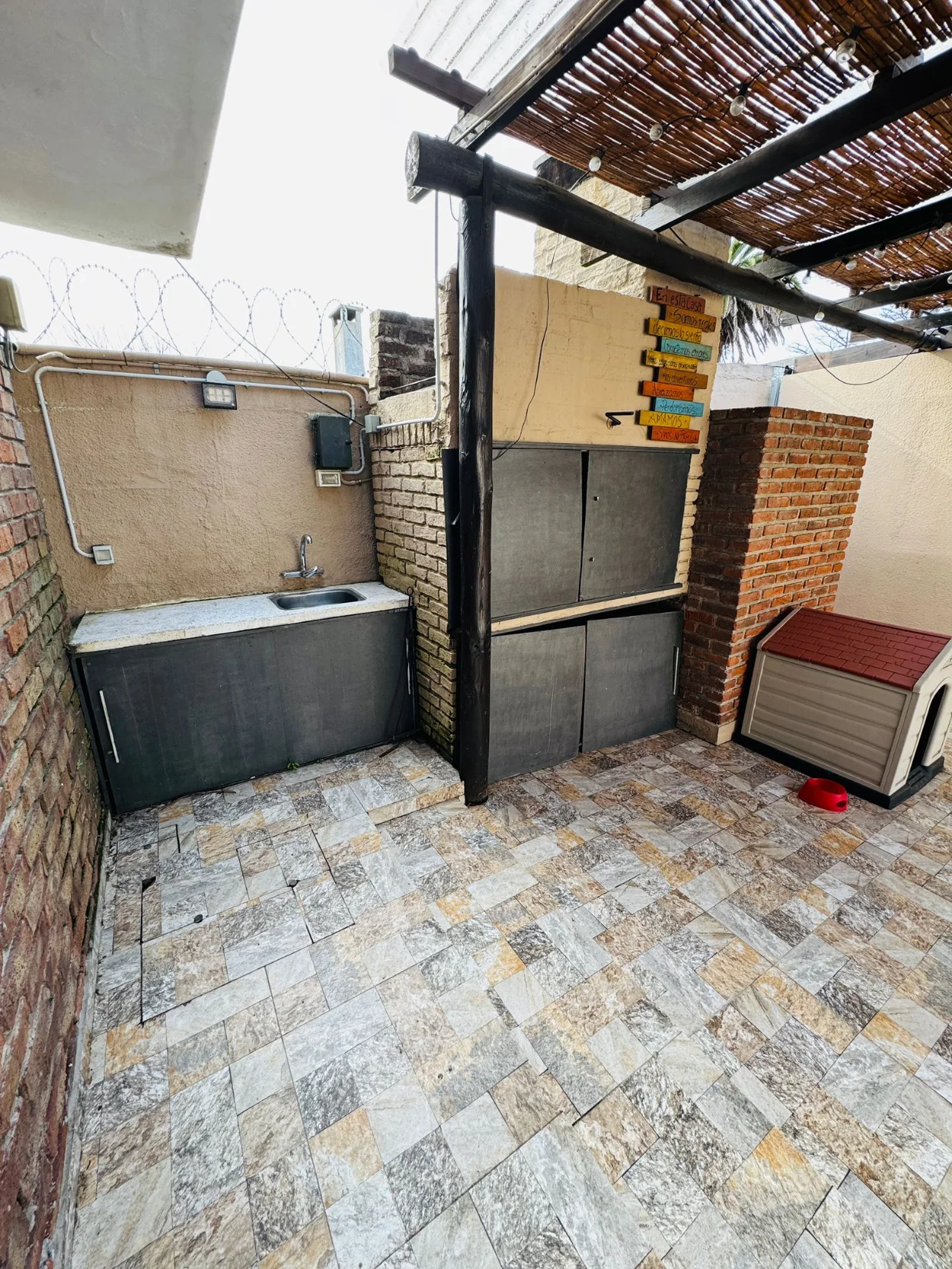 A) PLANTA BAJA: A la casa habitacion se accede por el parking donde se recepciona con una barbacoa techada exterior - muy comoda - con lavadero, contando ademas con otra barbacoa interior ala cual se accede desde el living de la casa, En este nivel se ubica la cocina comedor diario integrado al living con baño completo;