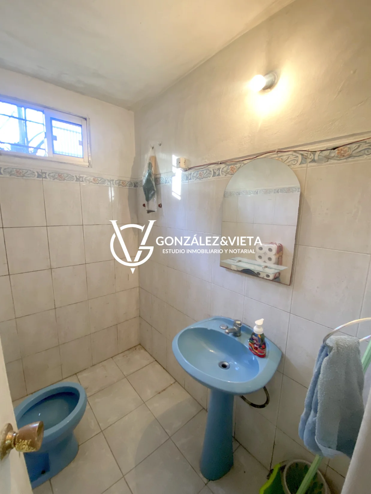 Baño completo, revestido con cerámicas.