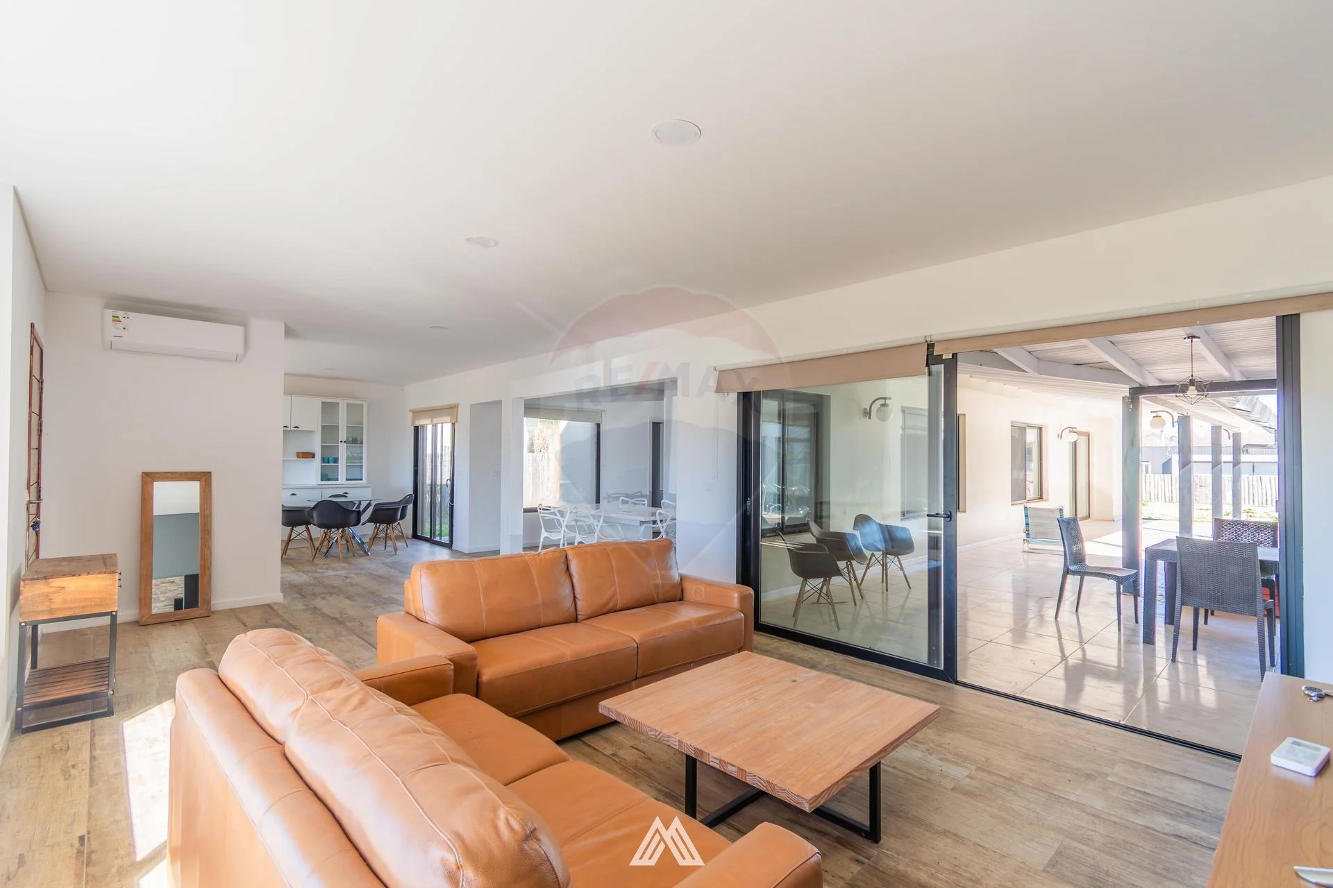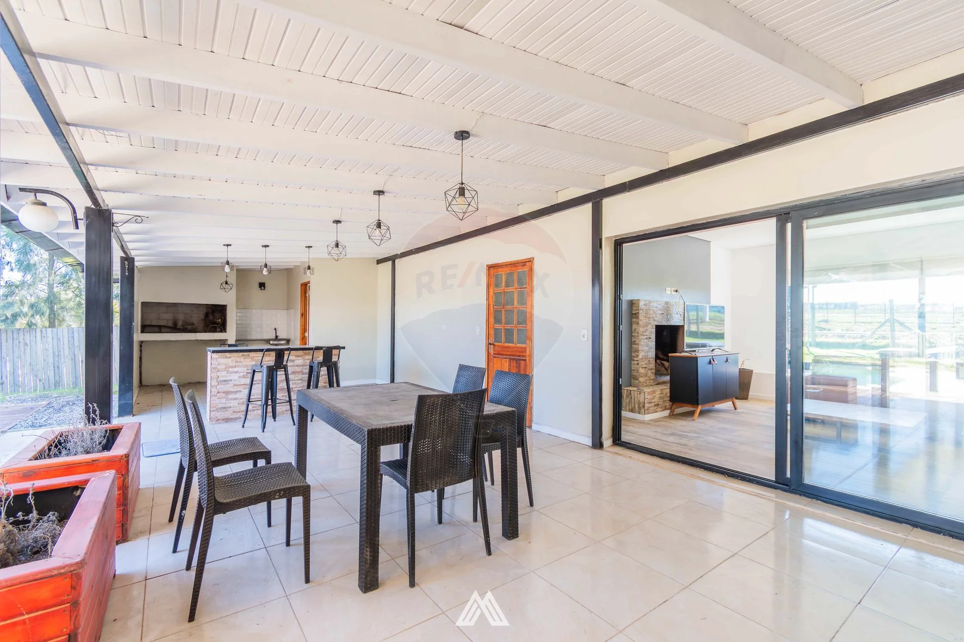 A la salida del living y del dormitorio principal gran galería techada con parrillero y baño.