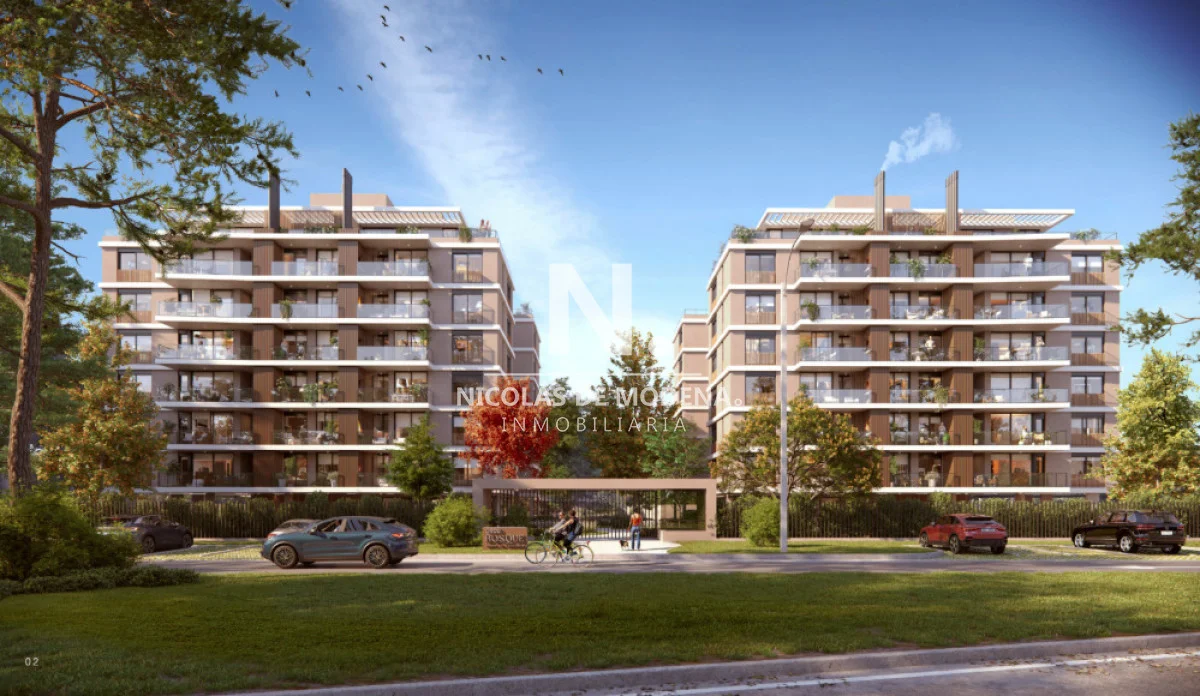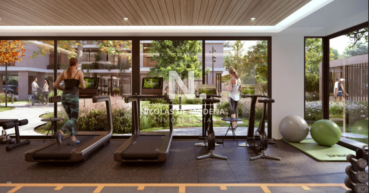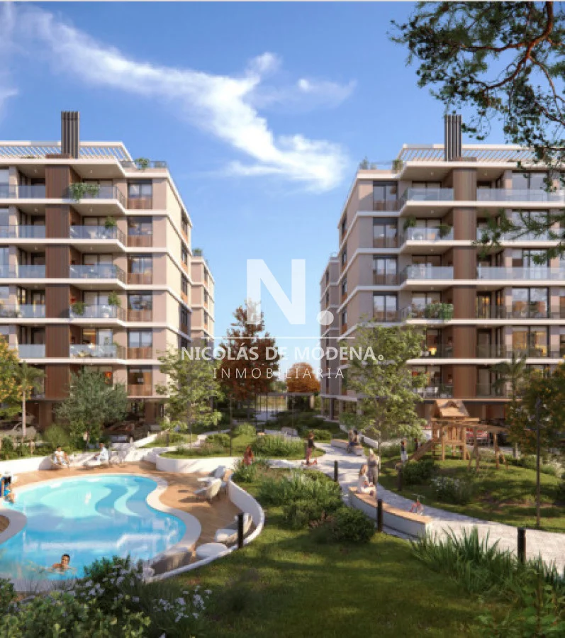 El edificio ofrece una gran variedad de amenities: piscina y solárium, gimnasio, parque verde con paisajismo, SUM con parrilleros, cowork, laundry, parking para bicicletas, juegos para niños y portería virtual con control de acceso.