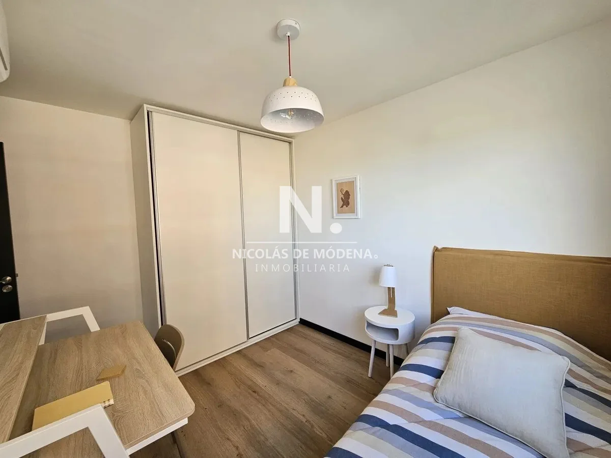 Cuenta con un amplio living comedor con terraza, cocina definida con equipamiento completo (horno eléctrico, anafe y campana extractora), muebles aéreos y bajo mesada, además de aire acondicionado instalado en living y dormitorios.