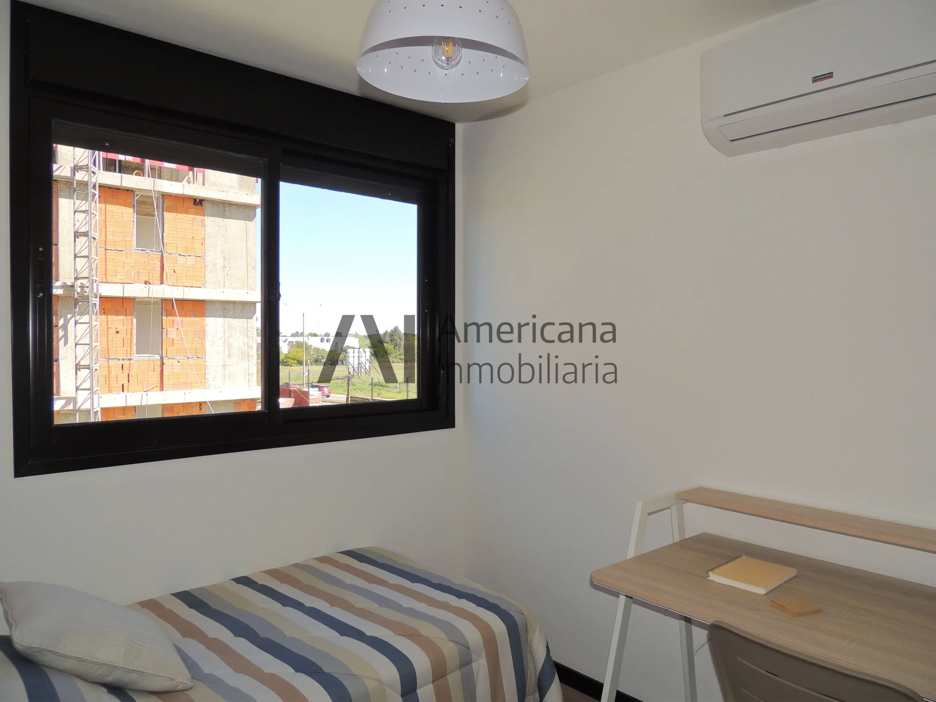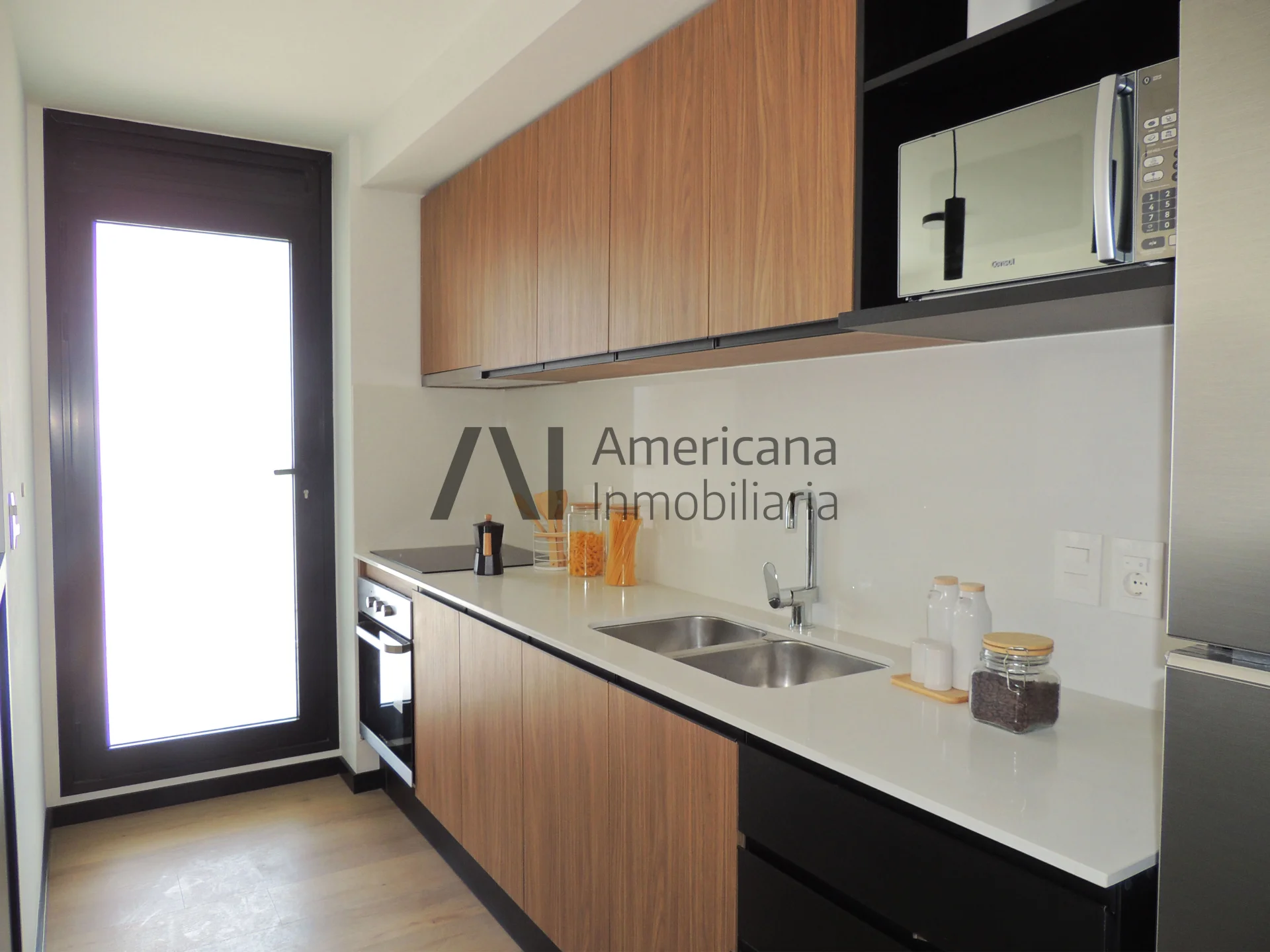 Ofrece: espacioso living-comedor con acceso a espectacular terraza principal con parrillero de uso exclusivo. Moderna cocina integrada con gran capacidad de guardado en mobiliario, con acceso a terraza de servicio. Dos cómodos dormitorios con placard. Baño de excelentes dimensiones, con placard auxiliar.