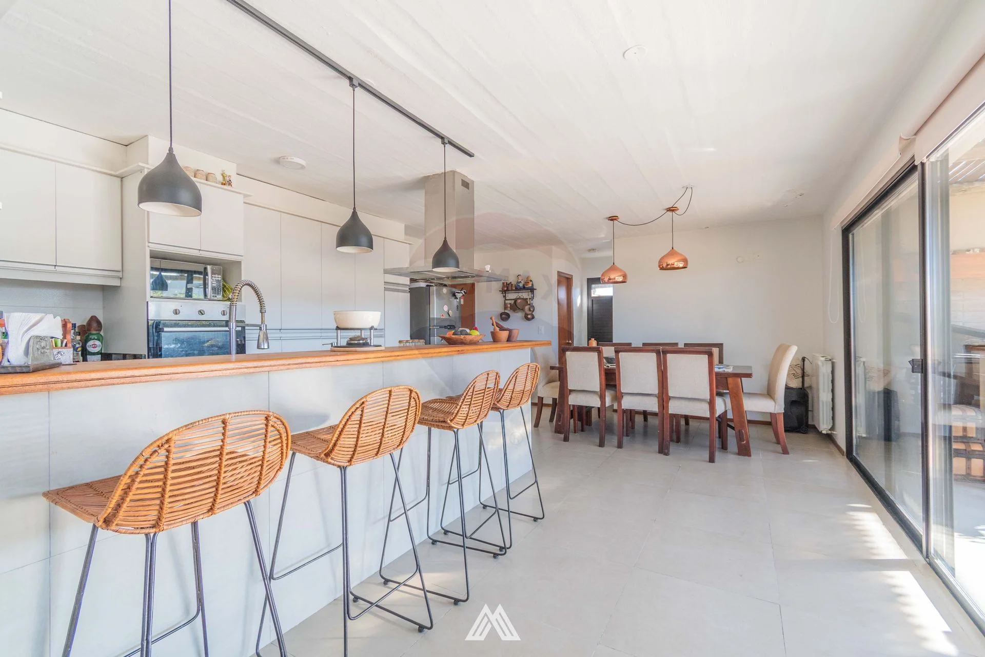 - Cocina integrada equipada, con profusión de placares y gran barra