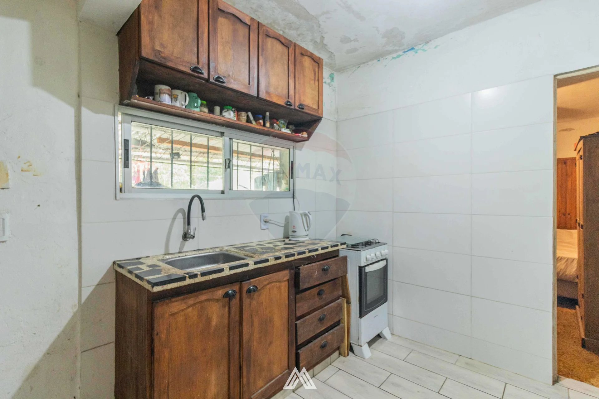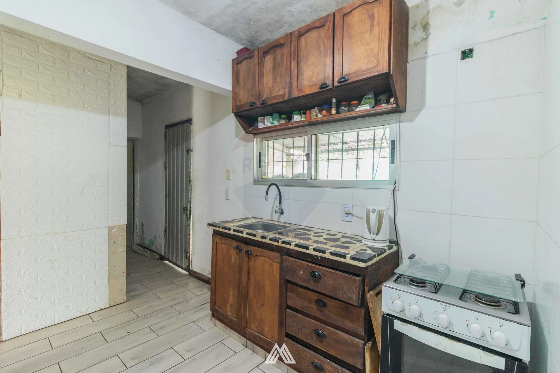 Cocina definida, donde encontramos una pequeña despensa hoy usada como deposito.