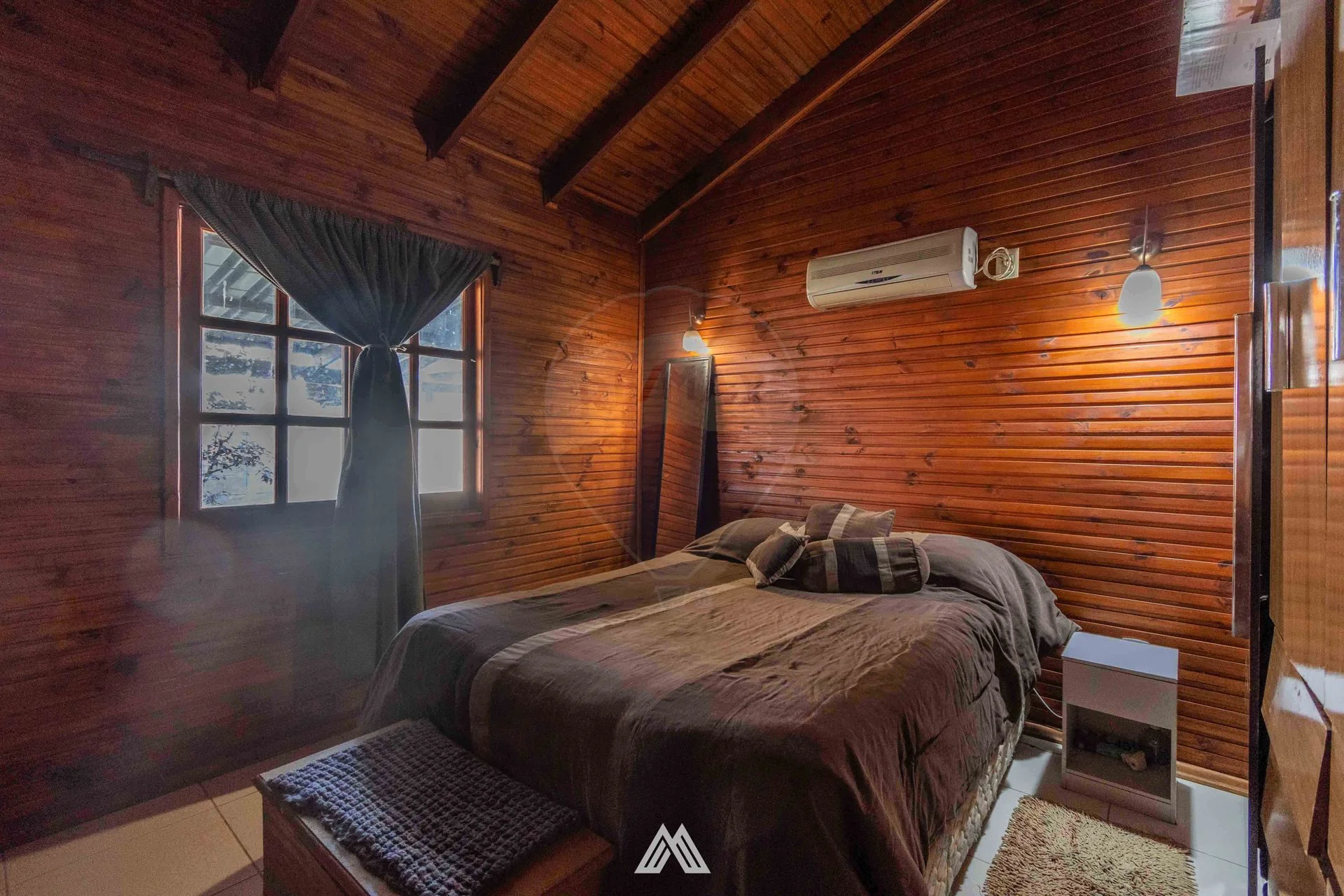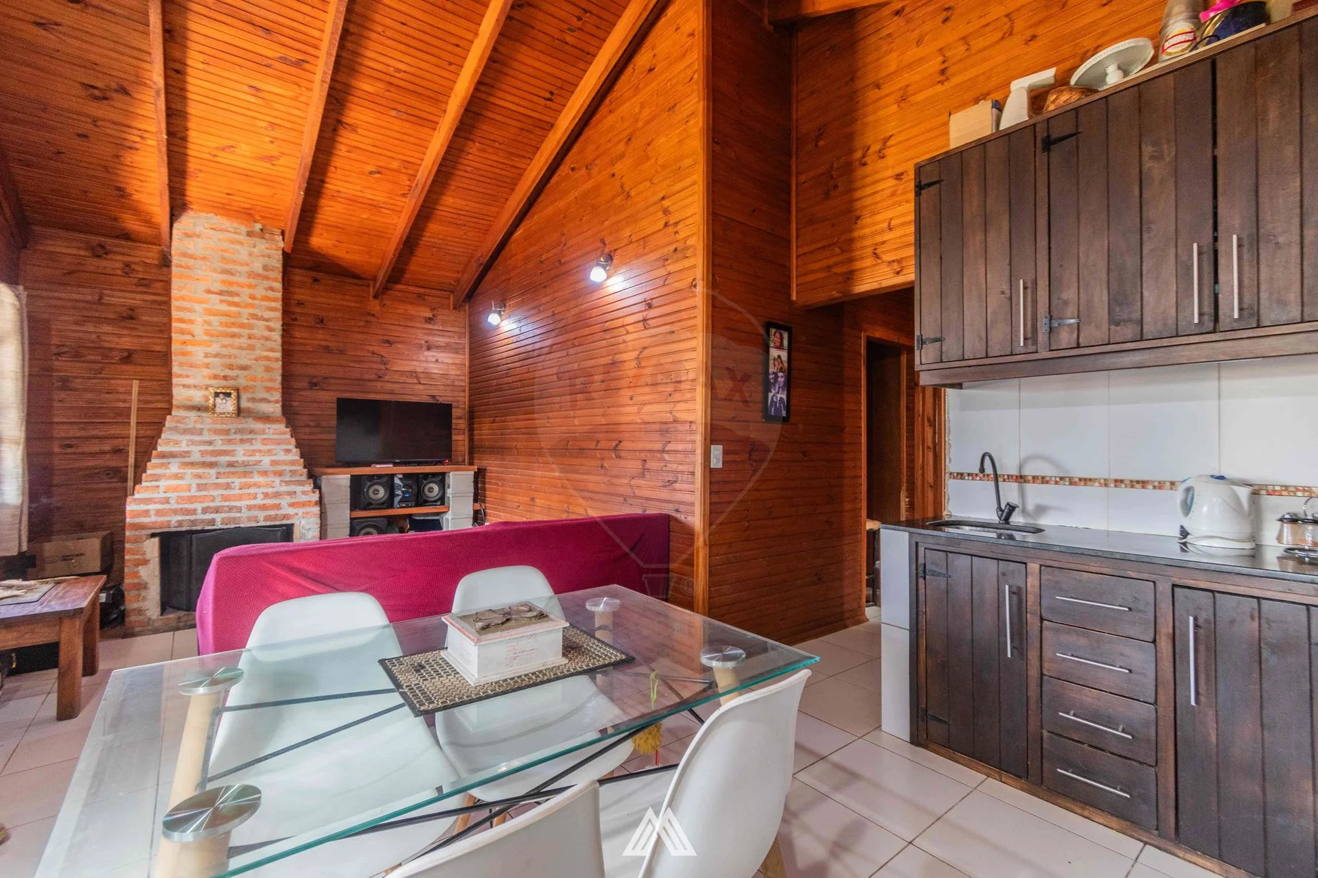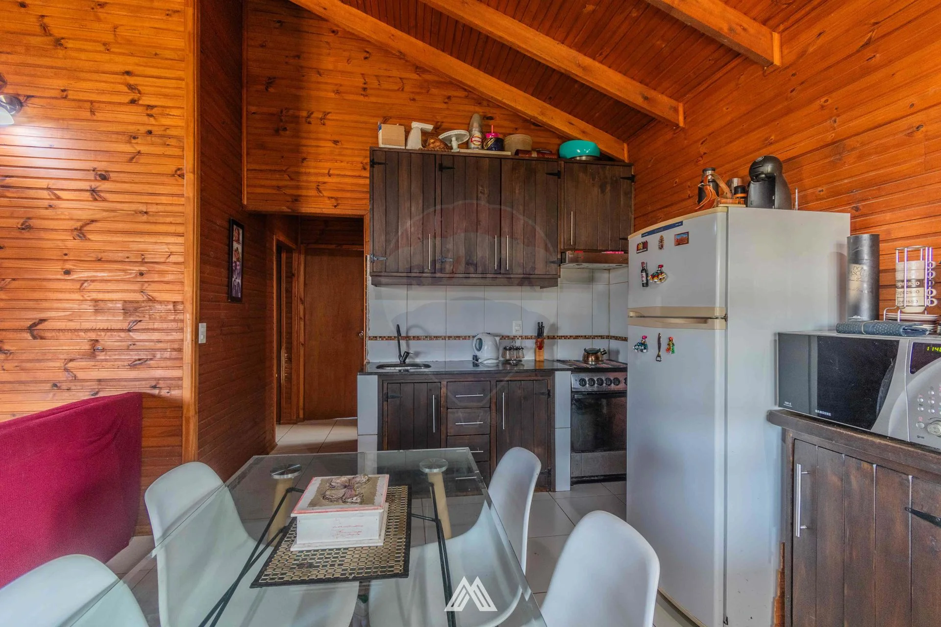 Es una hermosa casa tipo cabaña de madera que cuenta con living comedor con estufa a leña, cocina integrada, 3 dormitorios y baño. Galería al frente, cochera para dos vehículos en el lateral.