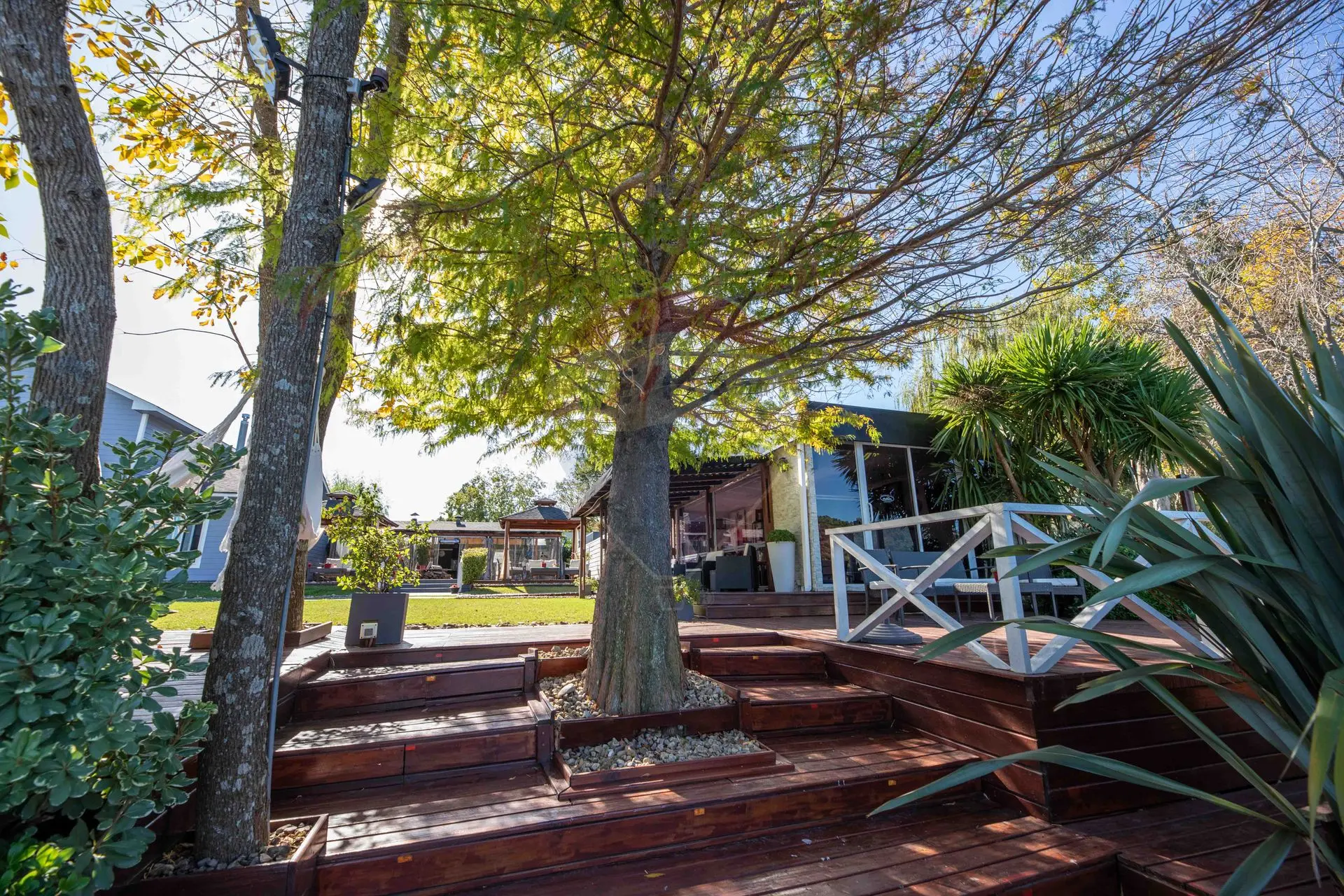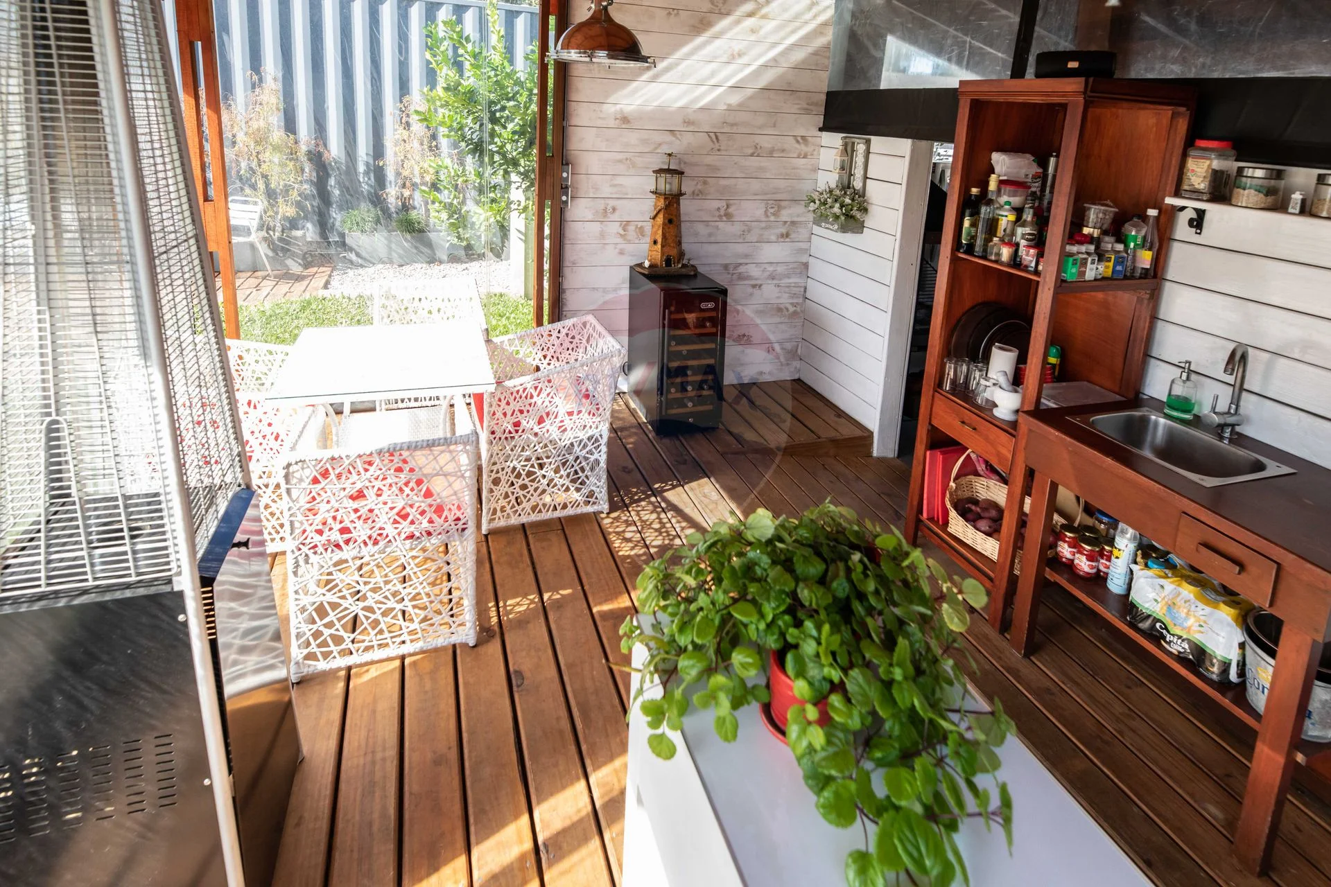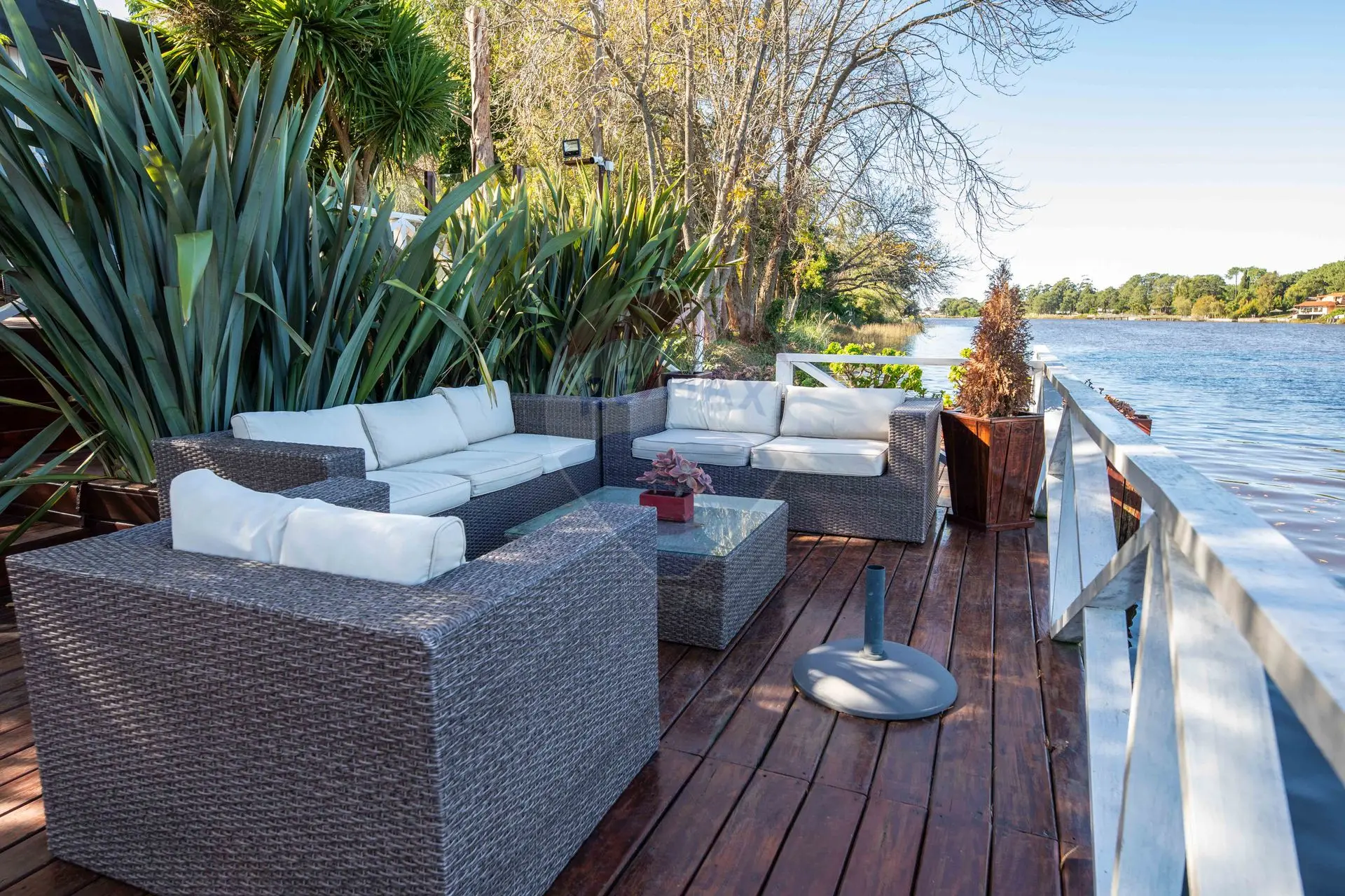 Posibilidades de ampliar la locación. Los apartamentos cuentan con área de estar con estufa a leña de alto rendimiento. Aberturas que proveen un muy alto grado de iluminación natural además de cortinas que brindan y reducen el ingreso de luz, posibilitando múltiples escenarios de iluminación. Cocina. Jardín frontal que dirige hacia el ingreso principal, por el lateral donde se dispone de cochera para siete autos.