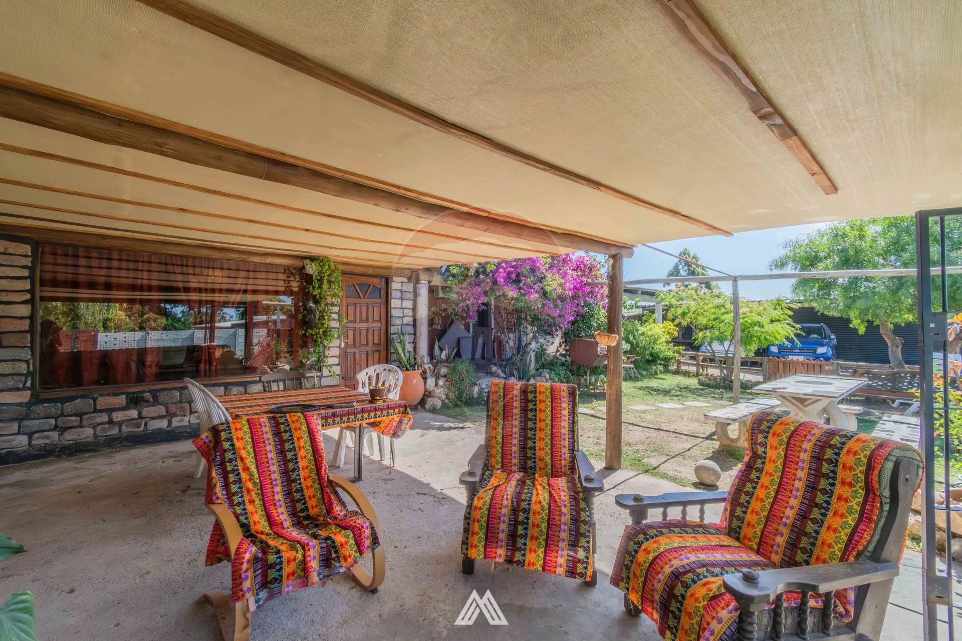 Punto sobresaliente es el amplio sector de barbacoa con parrillero y cocina integrada, diseñado para reuniones familiares y entretenimiento. El terreno ofrece significativas áreas verdes con potencial para futuras ampliaciones o construcciones complementarias.