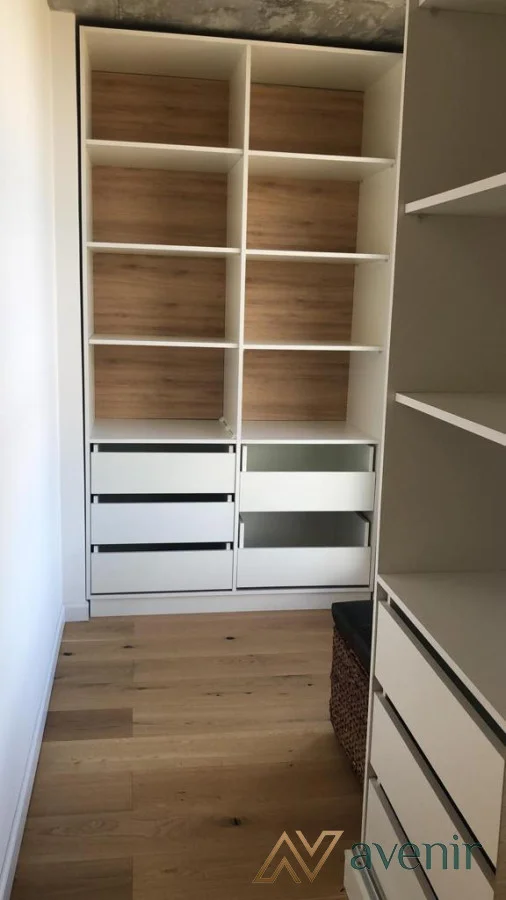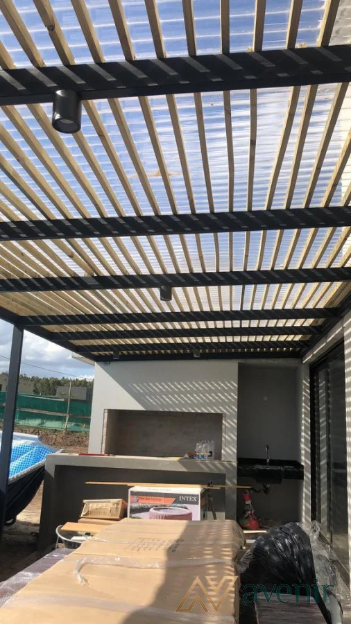 En cuanto a las terminaciones interiores se utilizará piso de madera tanto en el estar, como el comedor y en las habitaciones. En baños, cocina y recibidor se colocaron pavimentos de porcelanato gris.