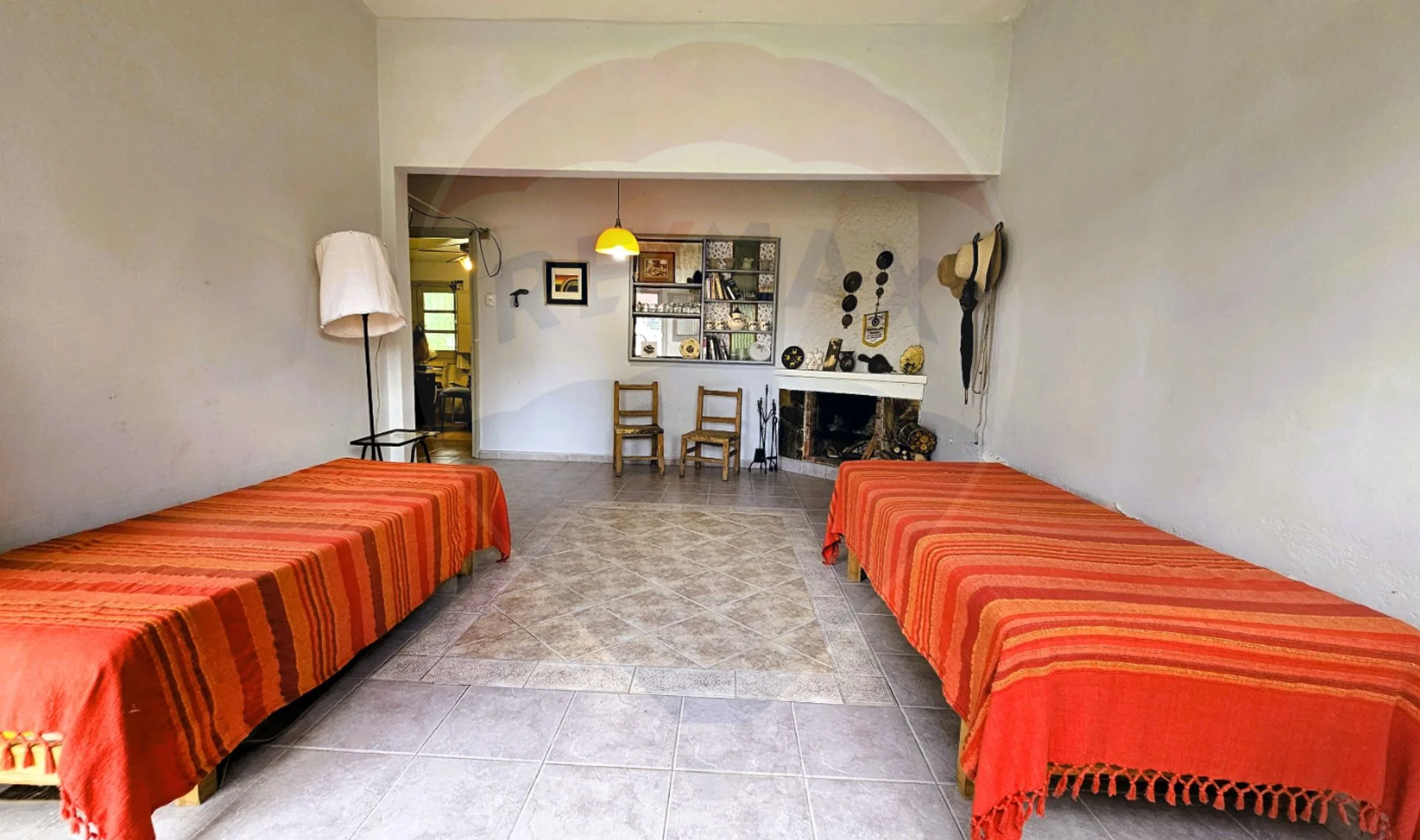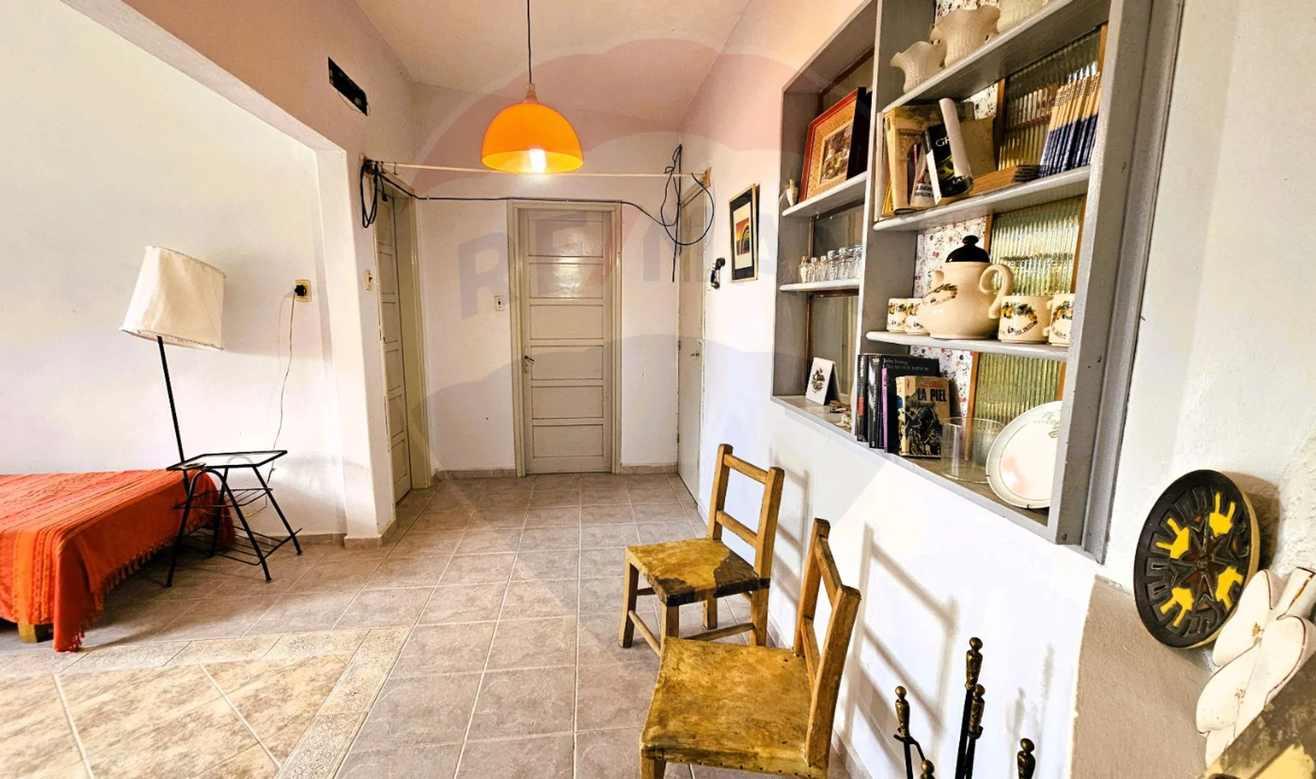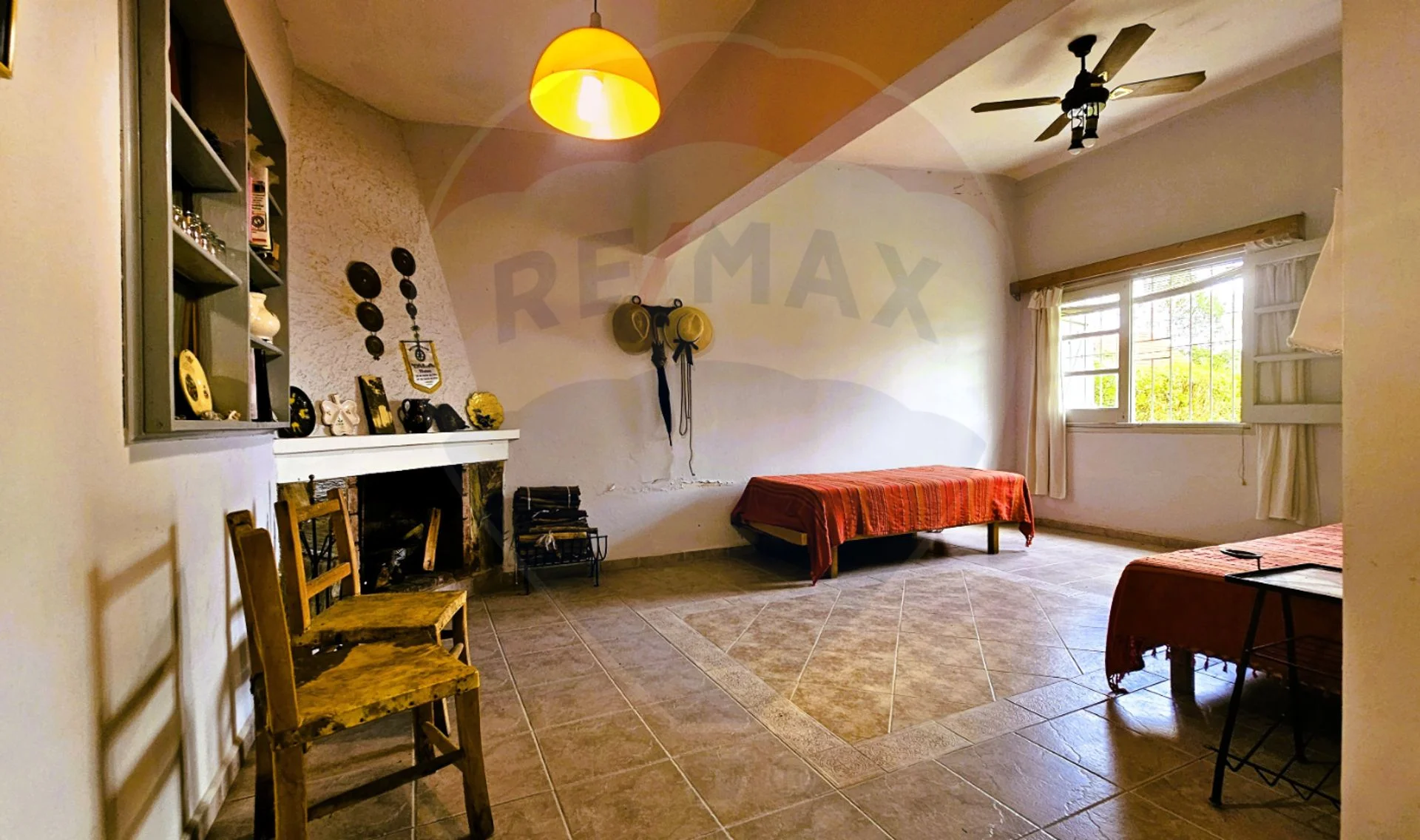El techo es de losa revestido en tejas y los pisos son cerámicos.