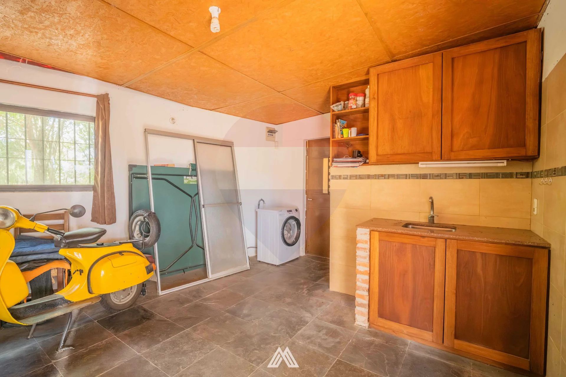 En el mismo padrón se encuentra un apartamento independiente de un dormitorio, con techo liviano y alero, que dispone de comedor con cocina integrada equipada con muebles aéreos y bajo mesada, baño completo y horno de barro exterior.