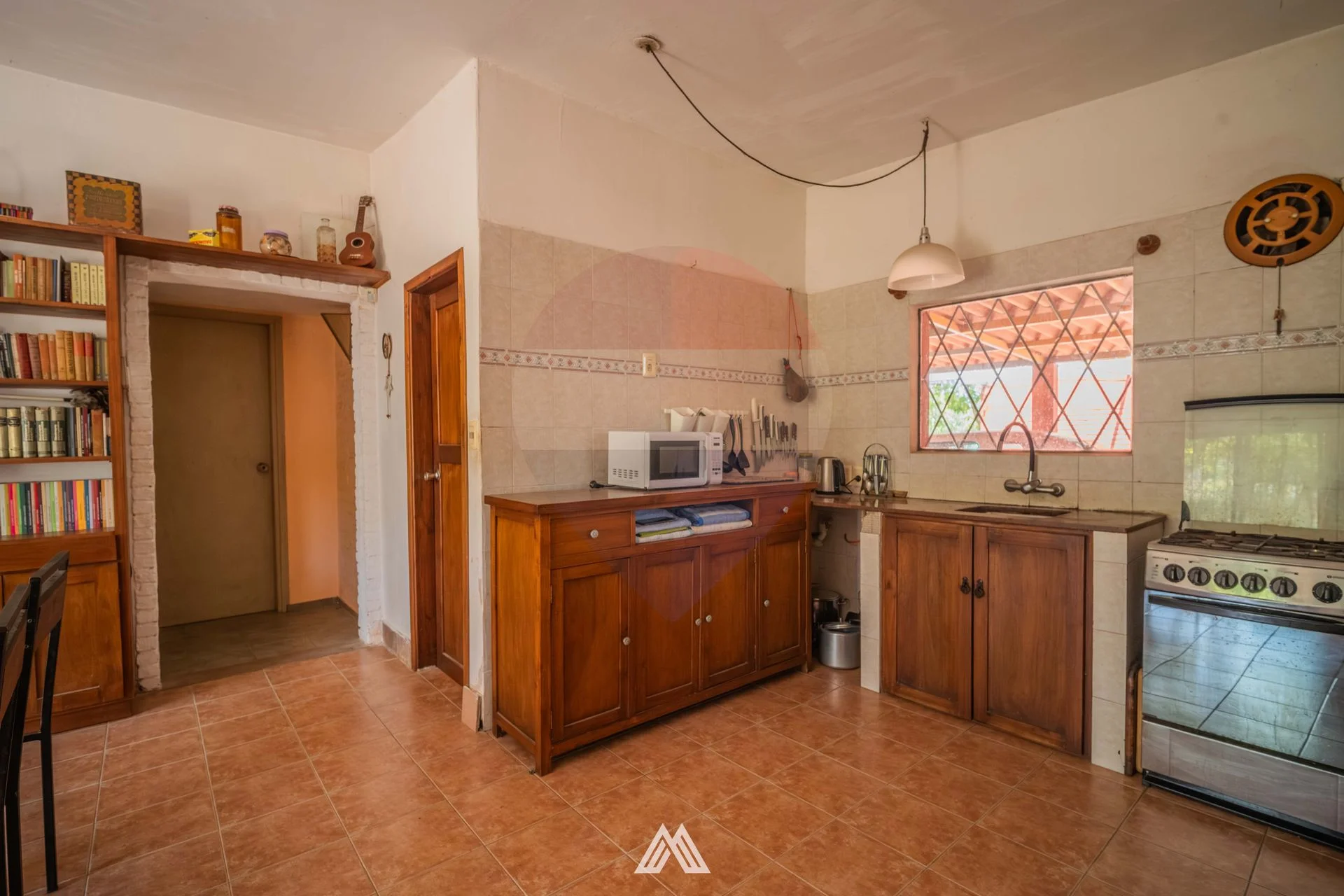 Las aberturas son mayoritariamente de aluminio con rejas de hierro, mientras que la cocina cuenta con abertura de hierro. Los pisos combinan cerámica y piedra laja, aportando carácter y funcionalidad a los distintos ambientes.