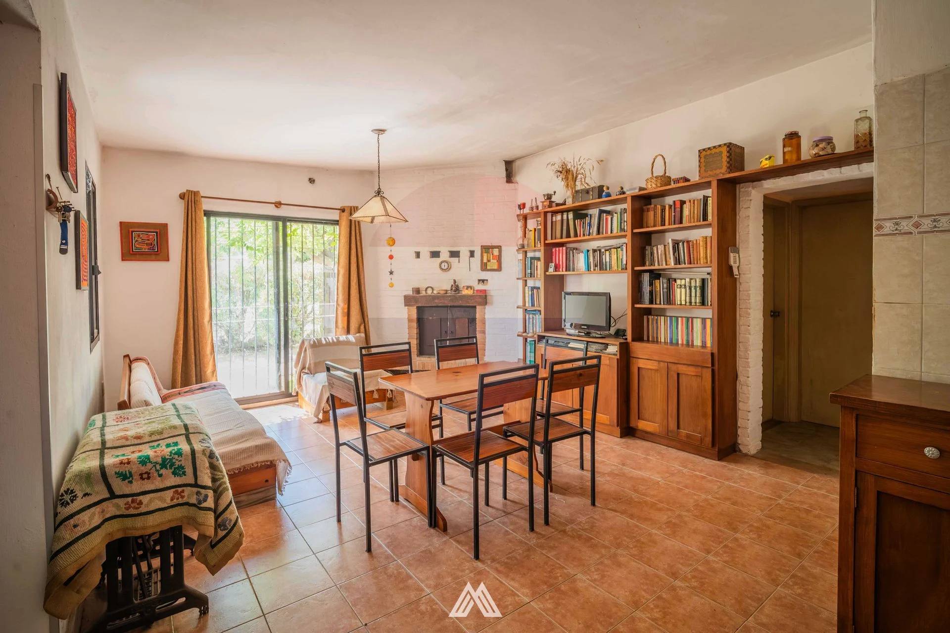 La casa principal, de construcción con techo de planchada, cuenta con living-comedor con estufa a leña y cocina integrada con mueble bajo mesada. Dispone además de un segundo estar con potencial para funcionar como cuarto dormitorio y dos baños, uno de ellos en construcción.