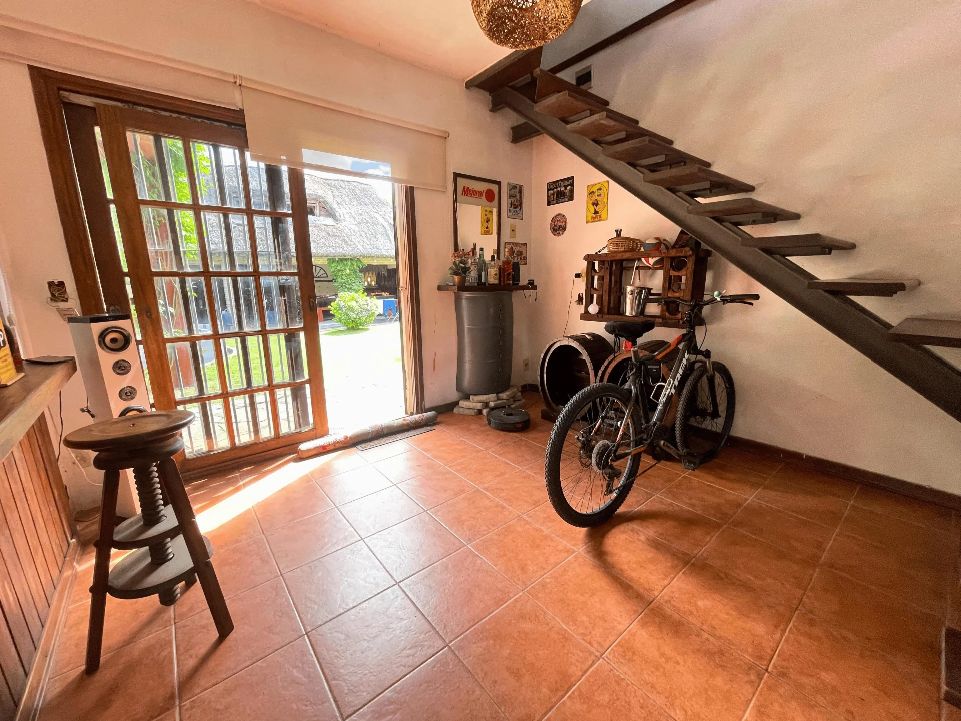 Amplio quincho abierto con barbacoa, baño y bar, para actualizar.