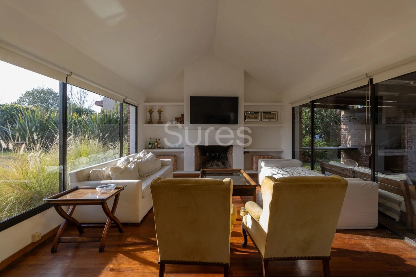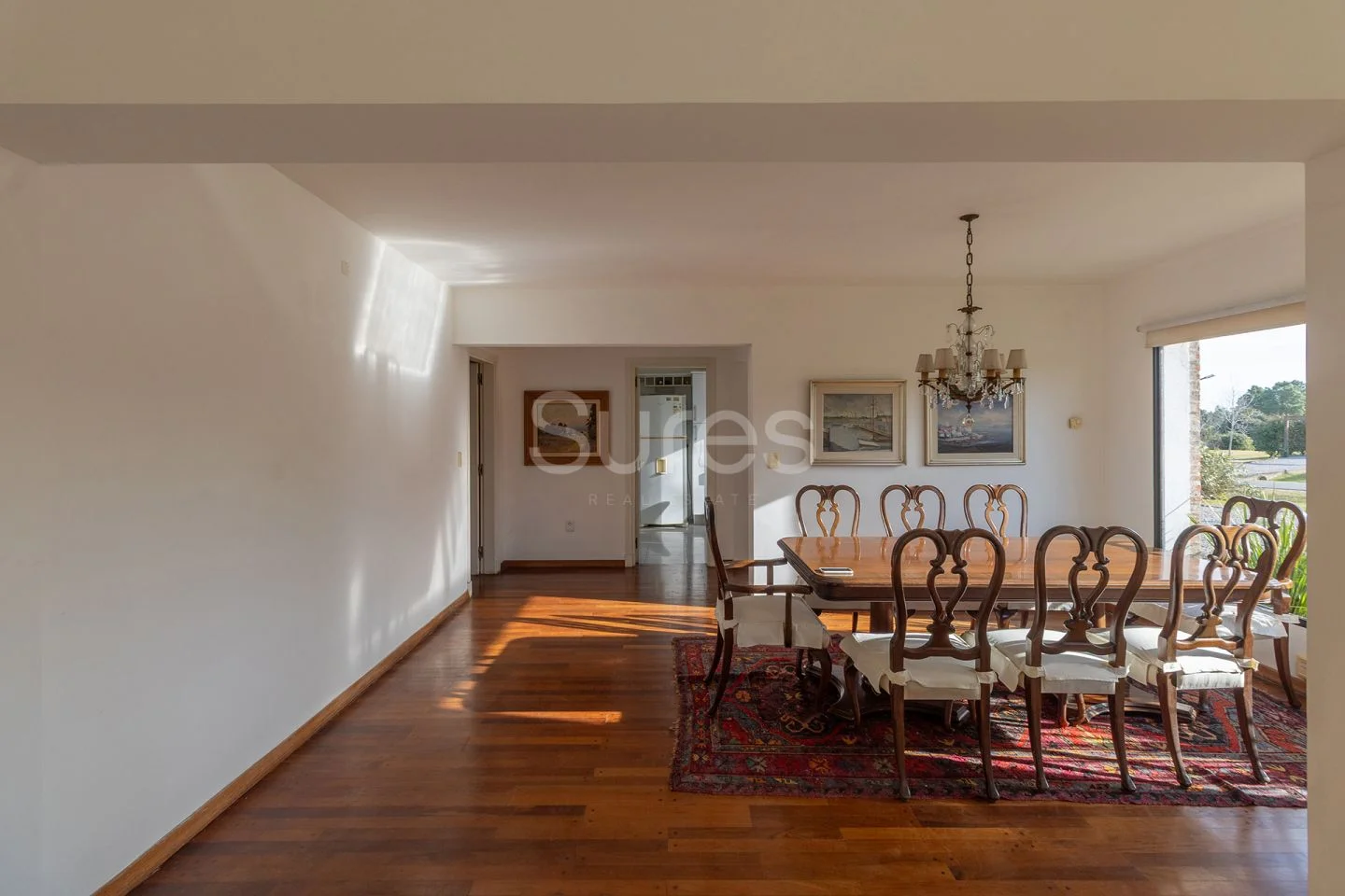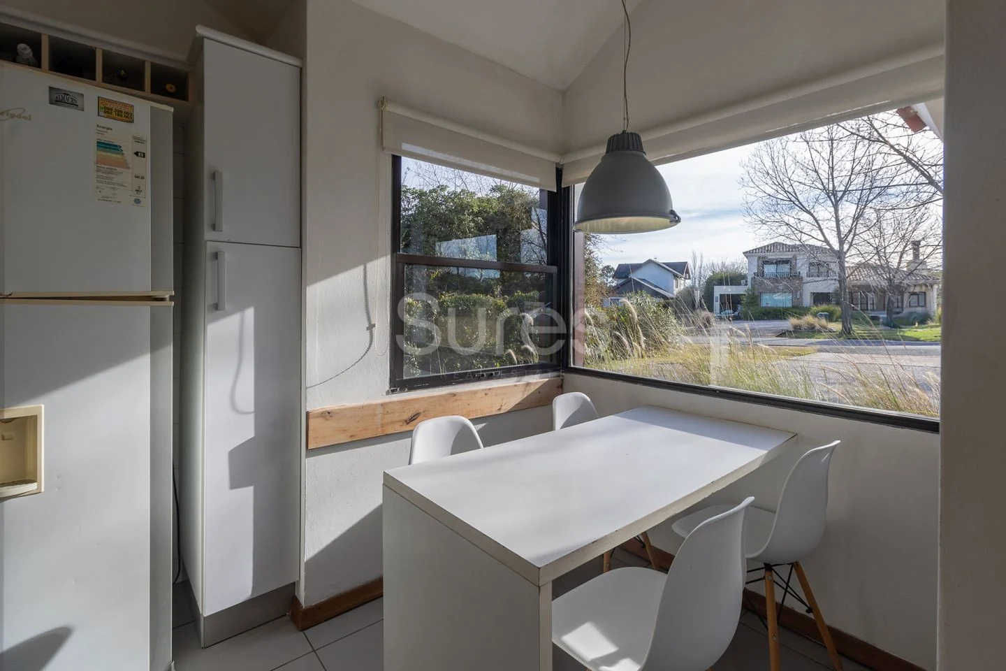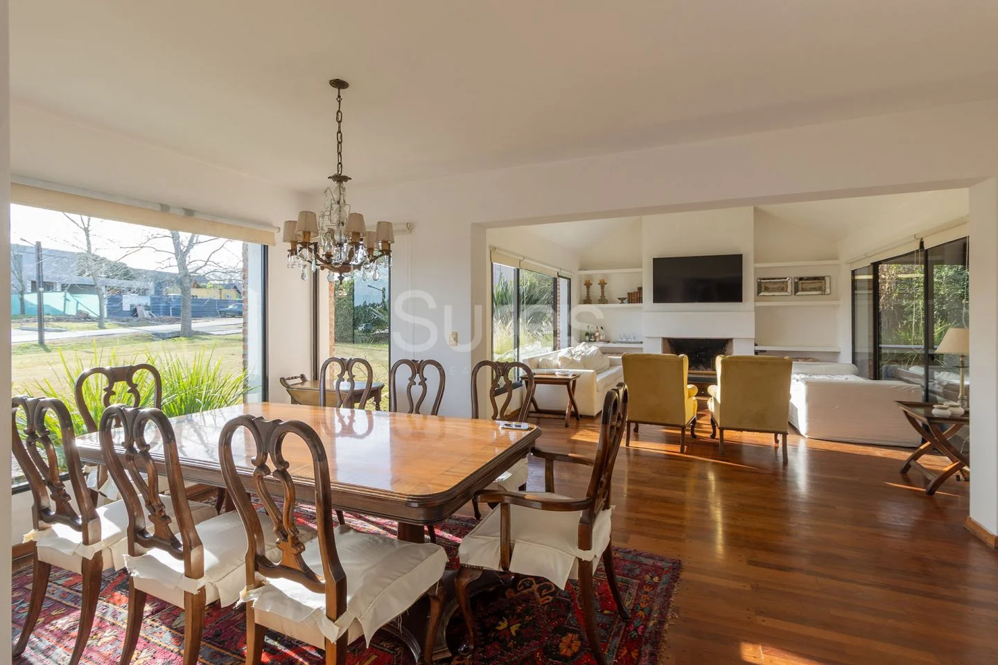 En el interior, se destacan los pisos de lapacho, aberturas de calidad con mosquiteros y persianas en dormitorios. La losa radiante eléctrica sectorizada y el sistema de aire acondicionado aseguran confort durante todo el año. La cocina definida con comedor diario, conecta con las áreas sociales y entrada a la cochera.
