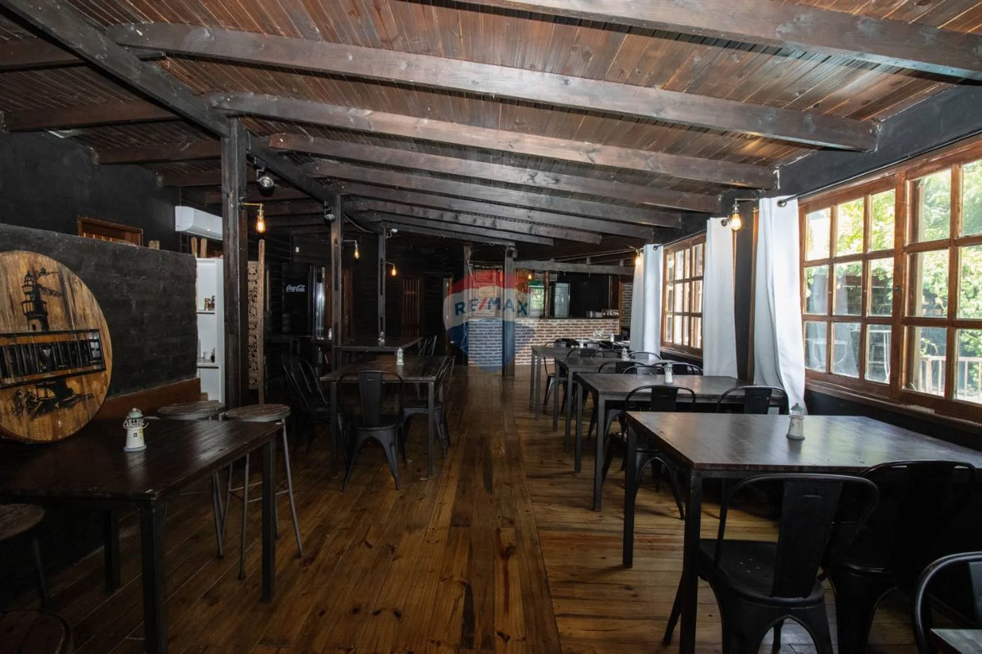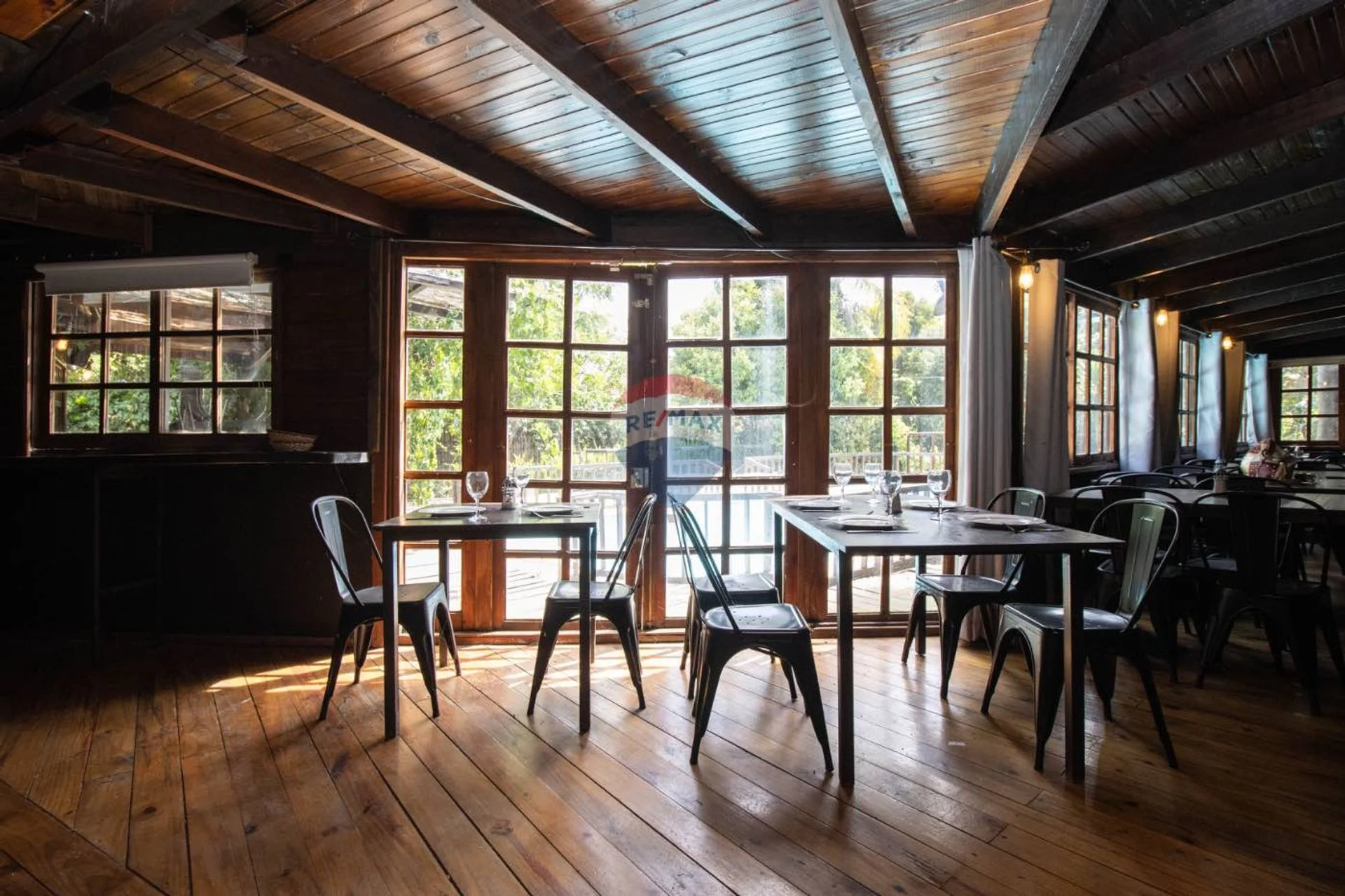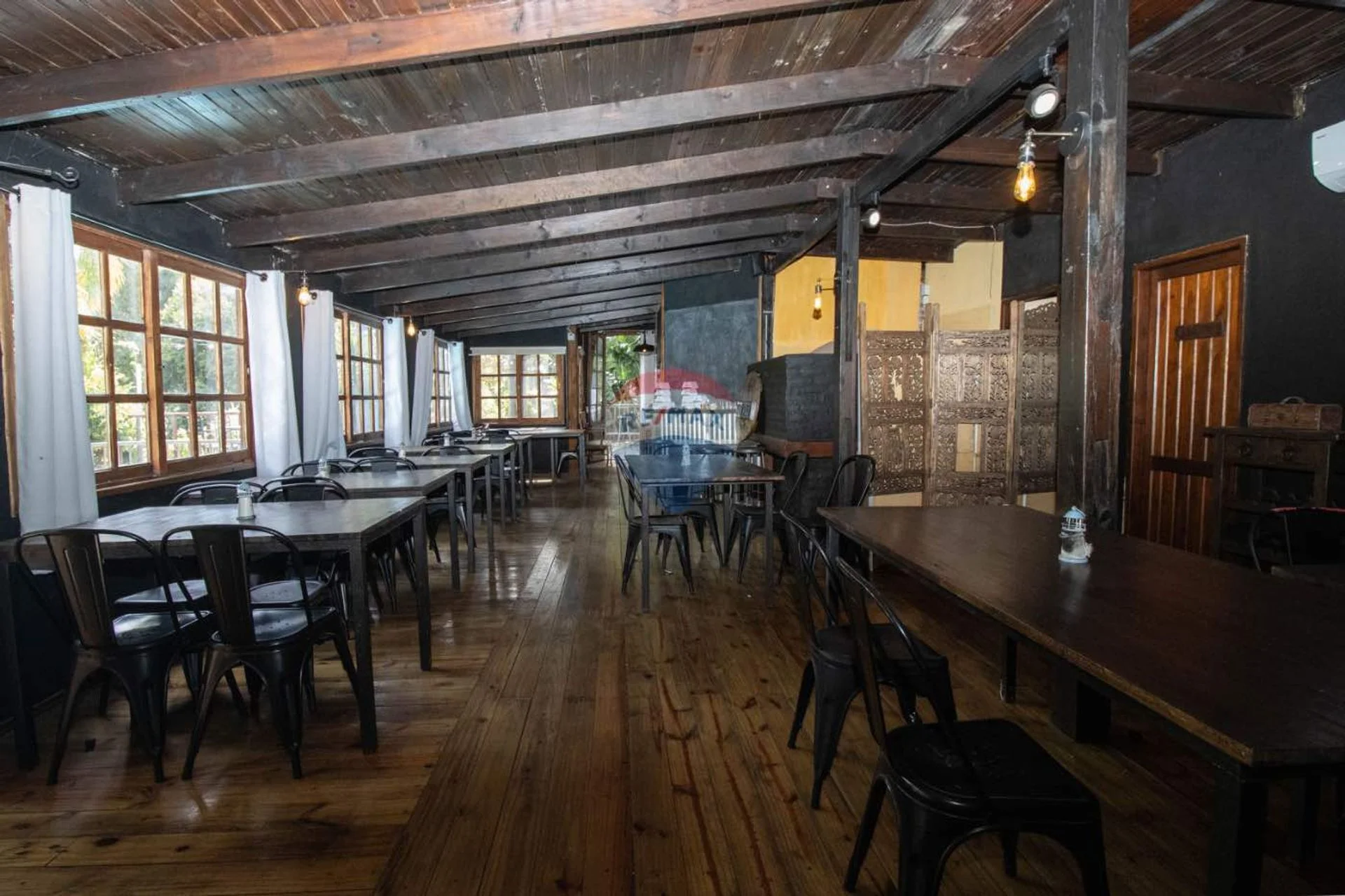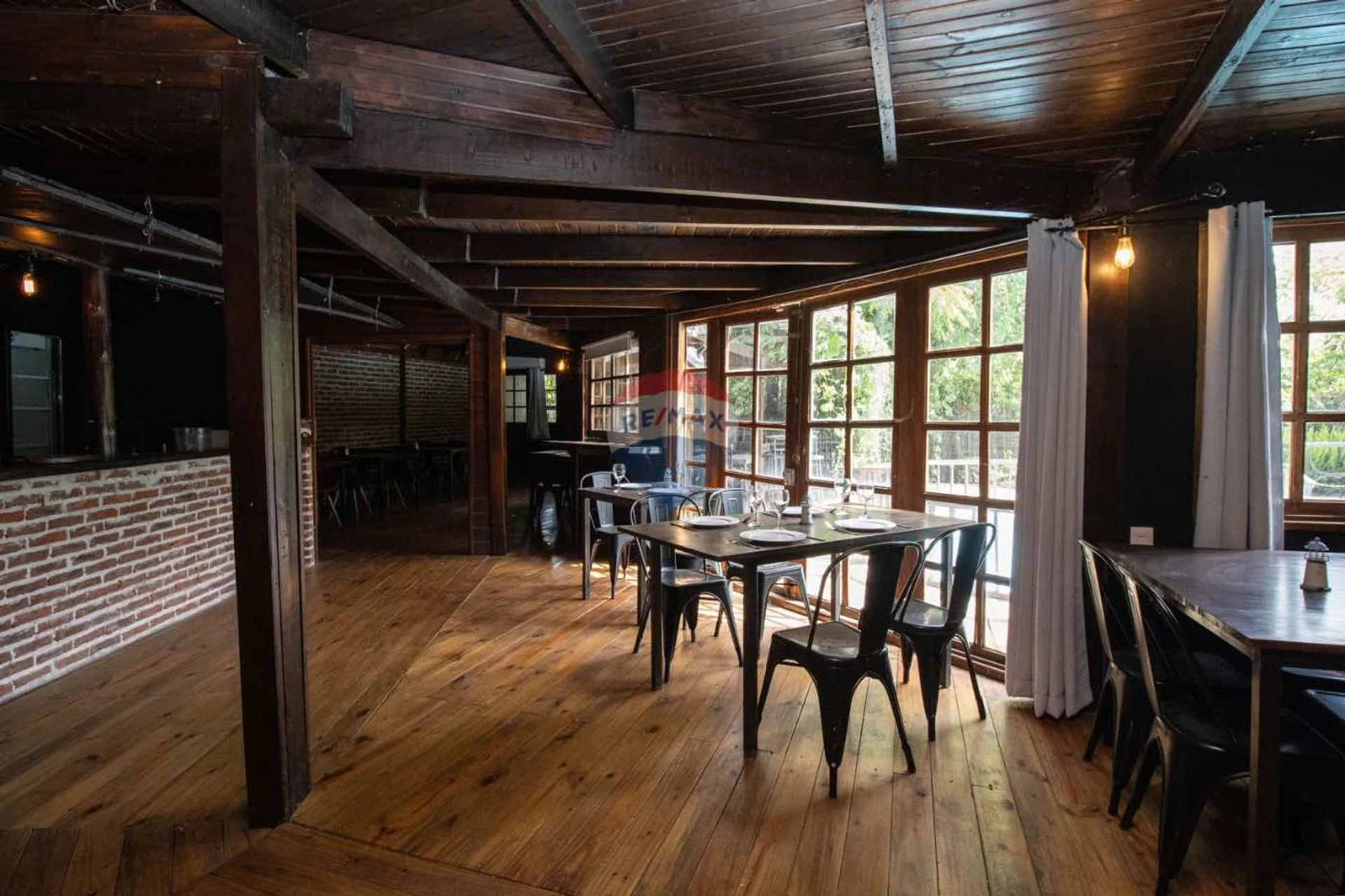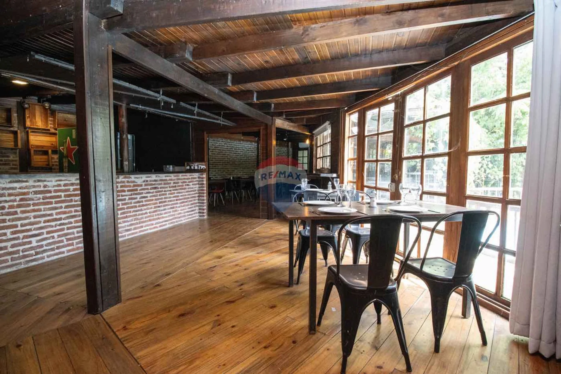 El gran salón principal es el corazón del restaurante: un espacio amplio, cálido y luminoso que puede dividirse en distintos sectores, permitiendo funcionar en varios formatos a la vez —desde cenas íntimas hasta eventos más grandes sin interferencias. La climatización mediante aires acondicionados, junto con la estufa de alto rendimiento, aseguran confort durante todo el año, mientras que el sistema de sonido envuelve el ambiente con la música justa para cada momento. El mobiliario, con mesas y sillas cómodas y bien distribuidas, refuerza la sensación de armonía.