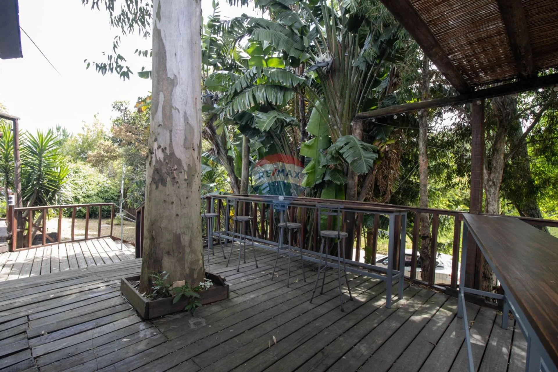 Al llegar, una escalera de madera rodeada de vegetación marca el comienzo de la experiencia. A medida que uno sube, el sonido del entorno y el brillo del deck principal invitan a detenerse y disfrutar. Este primer sector exterior, con mesas junto a la piscina, transmite la sensación de estar en un oasis gastronómico: ideal para almuerzos bajo el sol, cenas iluminadas por guirnaldas o tardes de cócteles relajados.