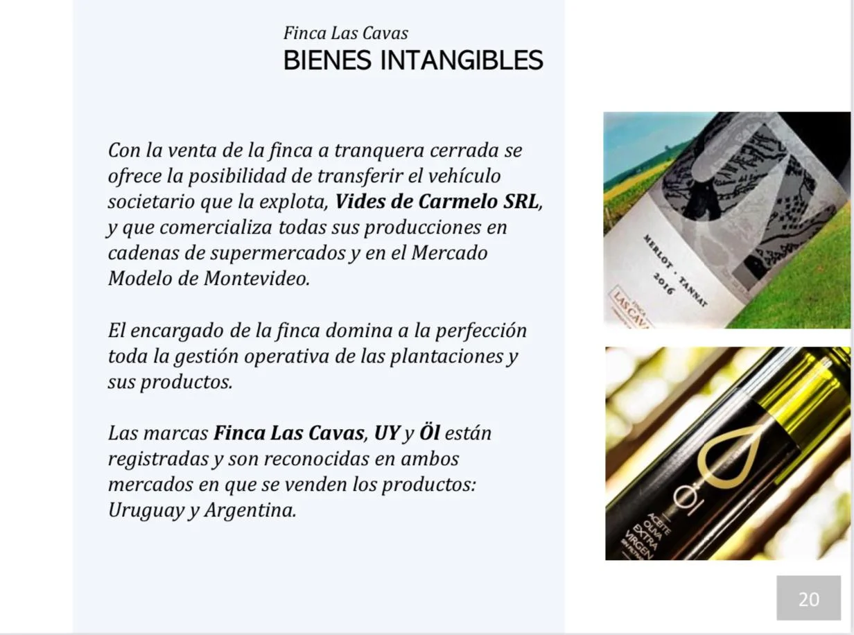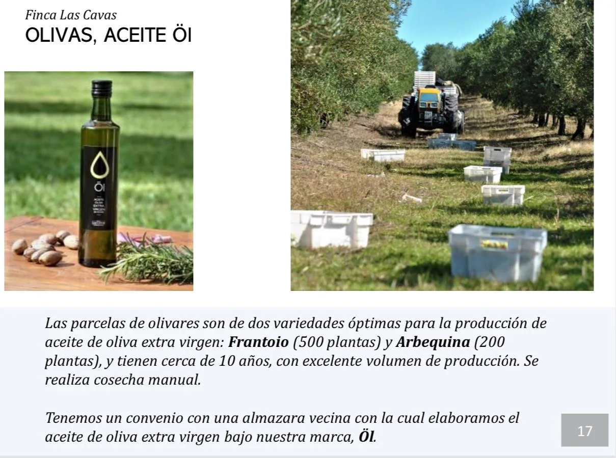 Marca de aceite de oliva OL y de vinos Finca las Cavas se entregan completamente funcionales, con maquinaria para la producción, además de materia prima y ya siendo distribuida en varios mercados.