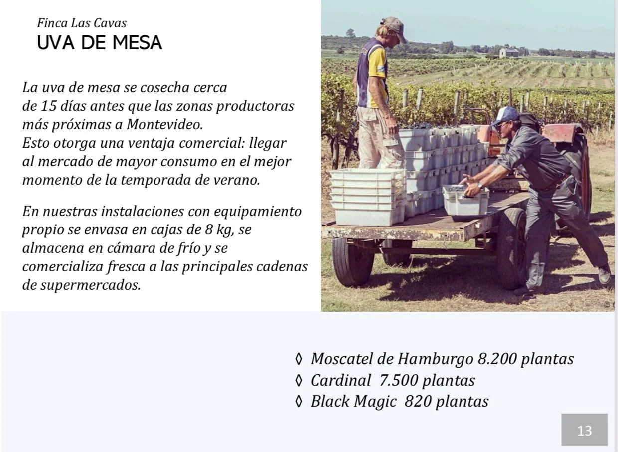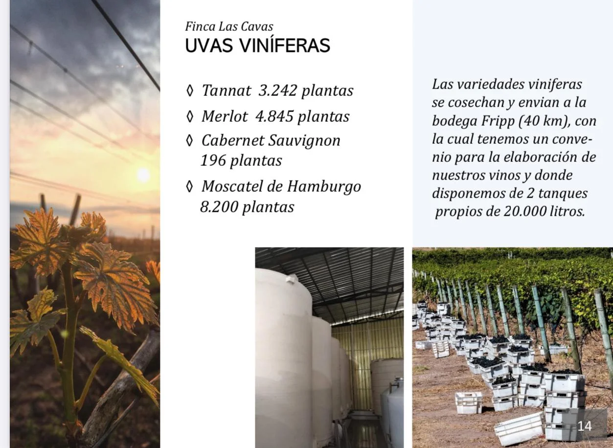 Estas 24 has se fraccionarán en chacras de 3 has, todas con parte de las plantaciones existentes, con la idea de que cada propietario pueda venderle la cosecha al productor de la bodega, para que elabore su propio vino.