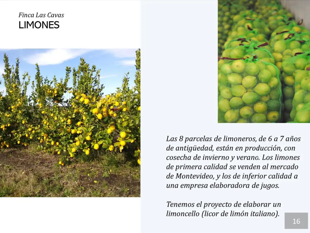 La cosecha, asi como el mantenimiento de las vides, limoneros y demás plantaciones pueden ser delegadas al encargado de chacra para su posterior producción.