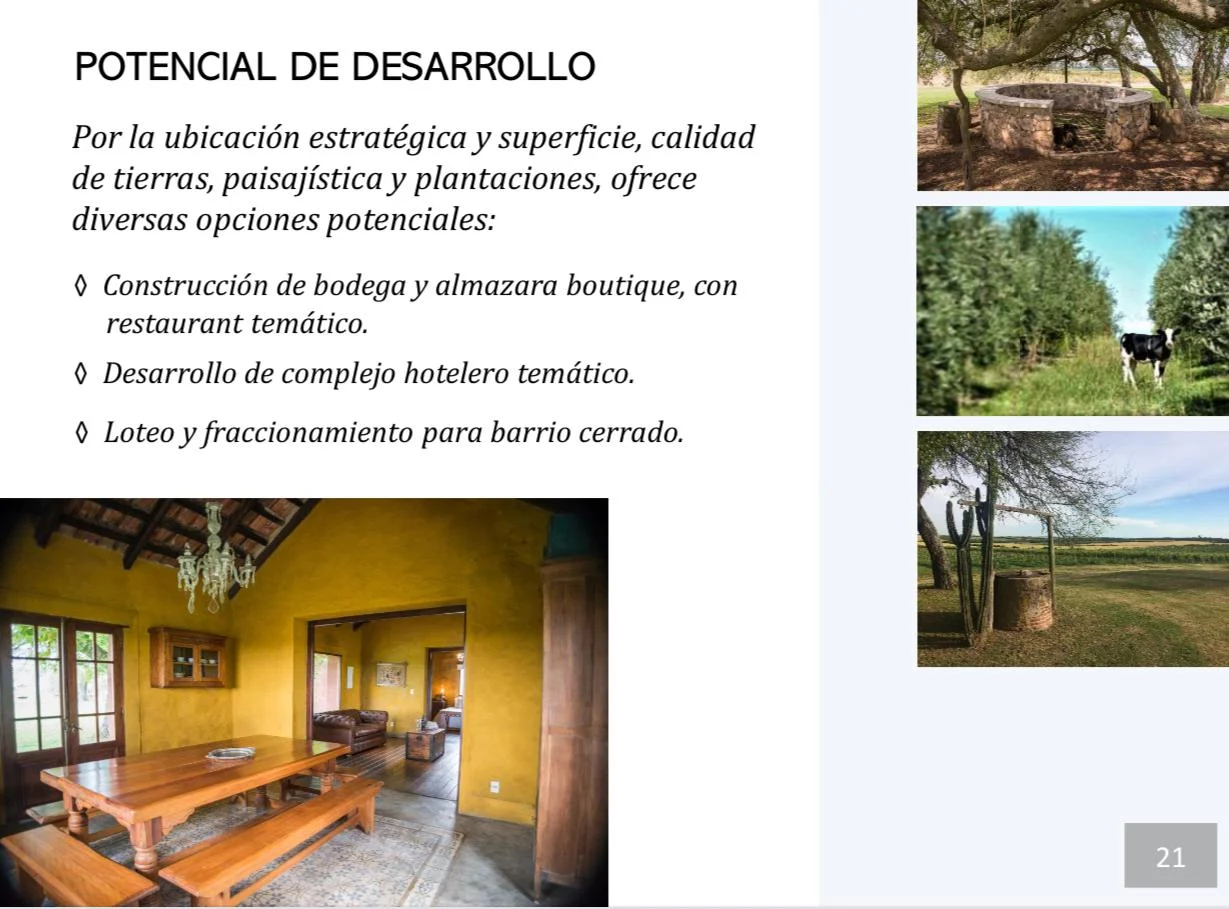 Zona con muchísimo potencial para realizar varias actividades turísticas y a su vez puede ser utilizada para loteos de un barrio privado, apertura de restaurante o hotel temático.