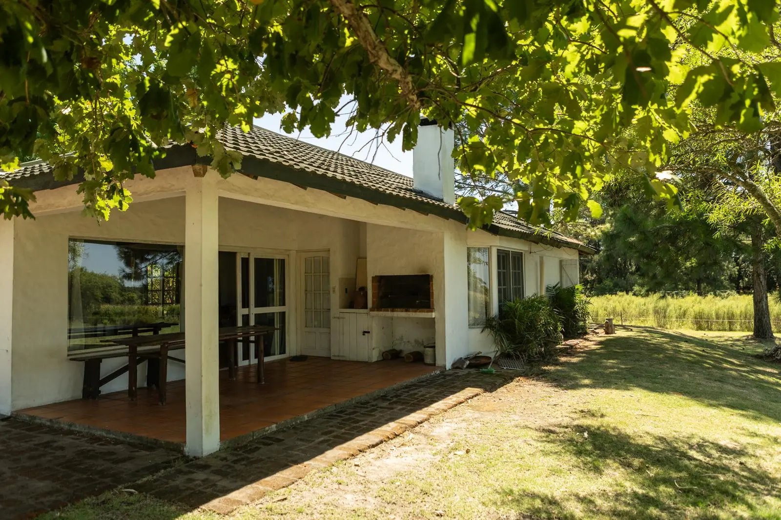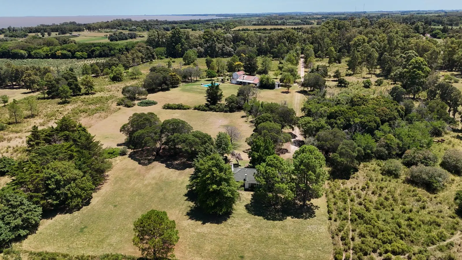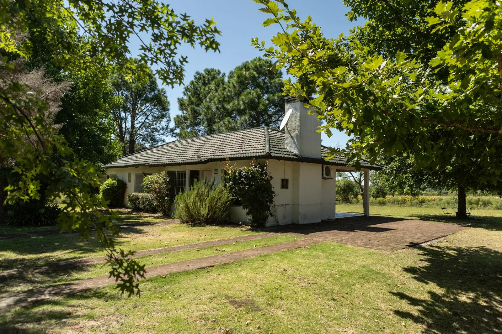 Tiene una superficie de 10.002 m2 y cuenta con una casa de campo desarrollada en una planta dentro de un hermoso entrono parquizado y arbolado.