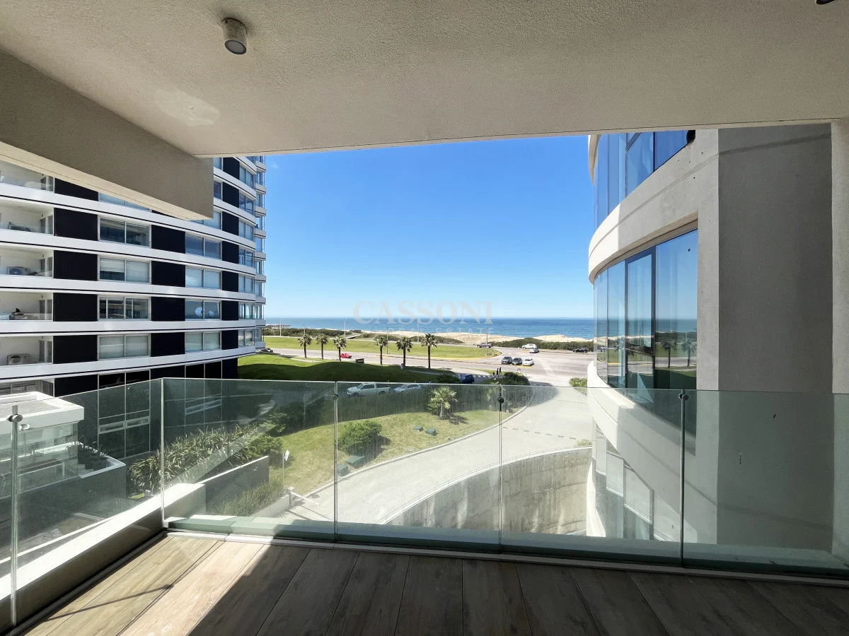 Con una superficie de 160 metros, este departamento ofrece 2 dormitorios en suite más toilette. Cocina integrada al amplio living comedor con una hermosa vista a la playa Brava. Area de Servicio, y balcón. Aire acondicionado central.
