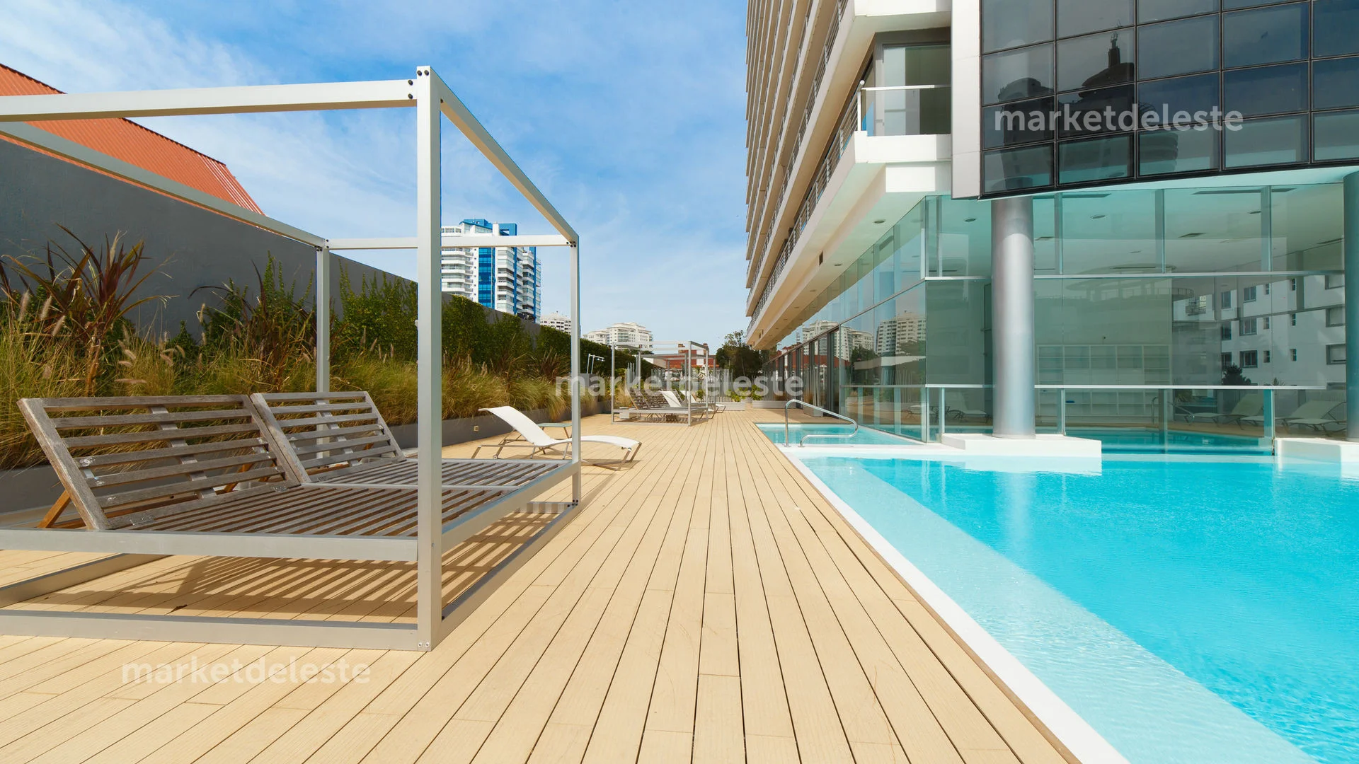Departamento de 3 dormitorios en suite más toilette en playa mansa. Unidad con espectaculares vistas. Edificio construido en el año 2014 con todos los amenities. Se encuentra totalmente amoblado y equipado. Incluye 1 garage en subsuelo. Referencia Interna : Tera-2565