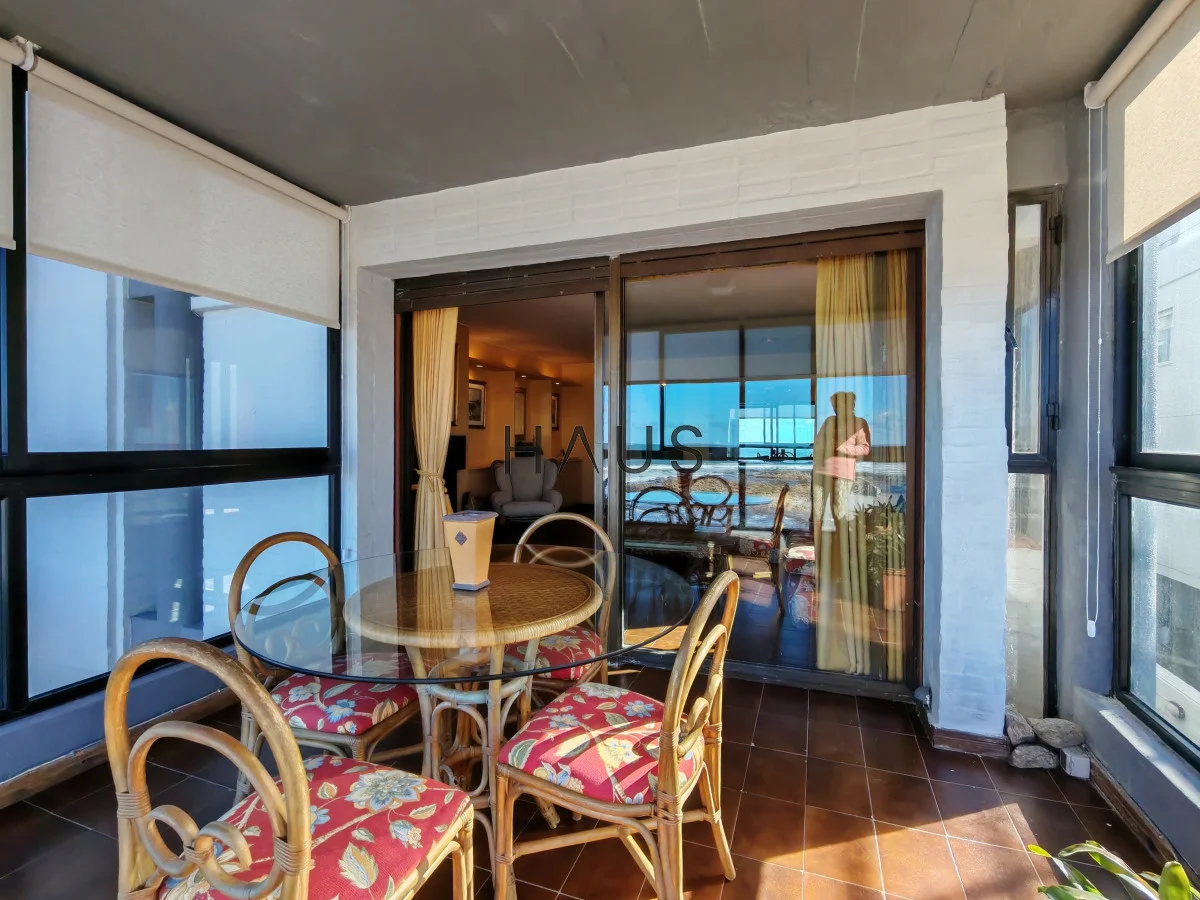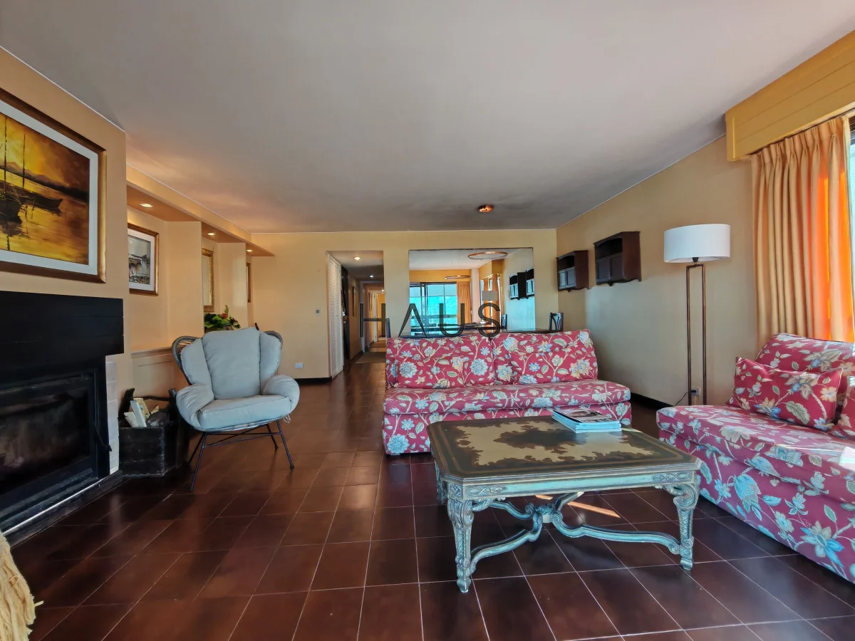 Apartamento reciclado de 3 dormitorios, 3 baños y 2 suites, con capacidad para 6 personas, está ubicada frente al mar y con vista directa. La cocina está definida y el living comedor es amplio y acogedor con estufa a leña y aire acondicionado. Además, contamos con amenities como recepción, portería, servicio de mucamas, sauna y piscina. ¡No pierdas la oportunidad de vivir en un lugar tan especial! Garaje para 1 auto.