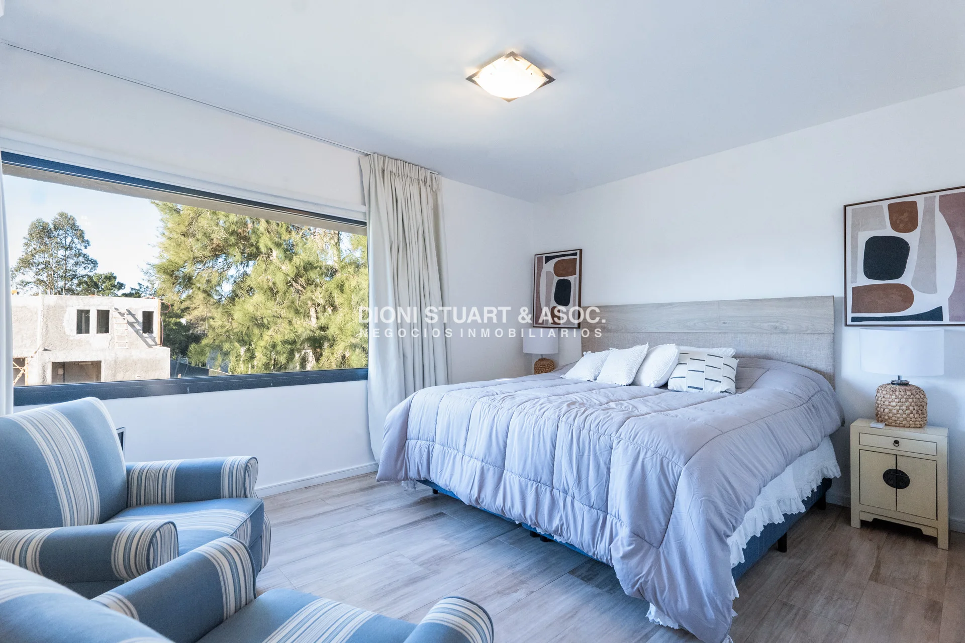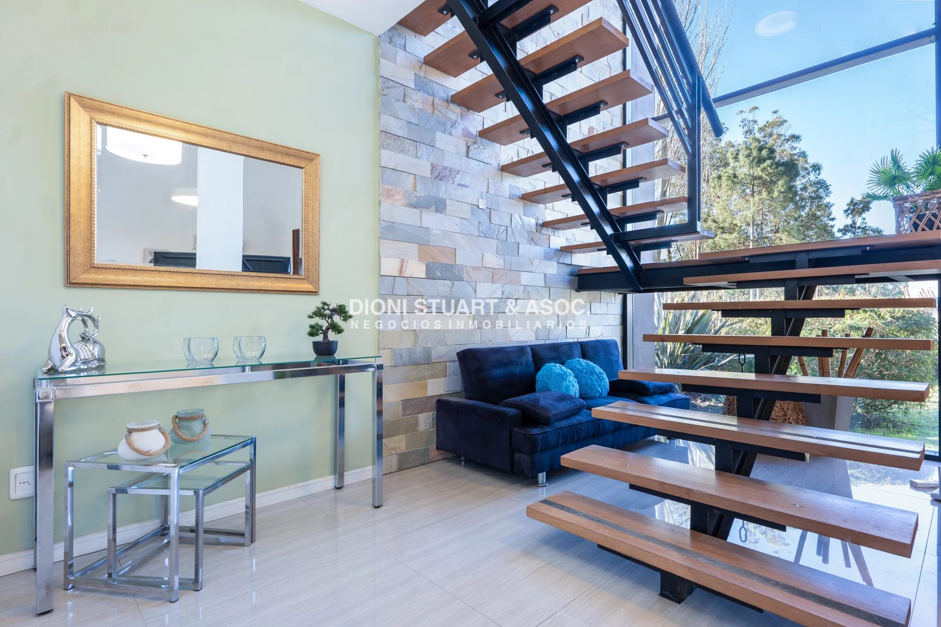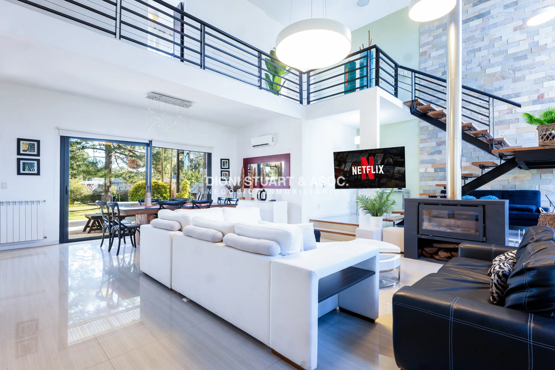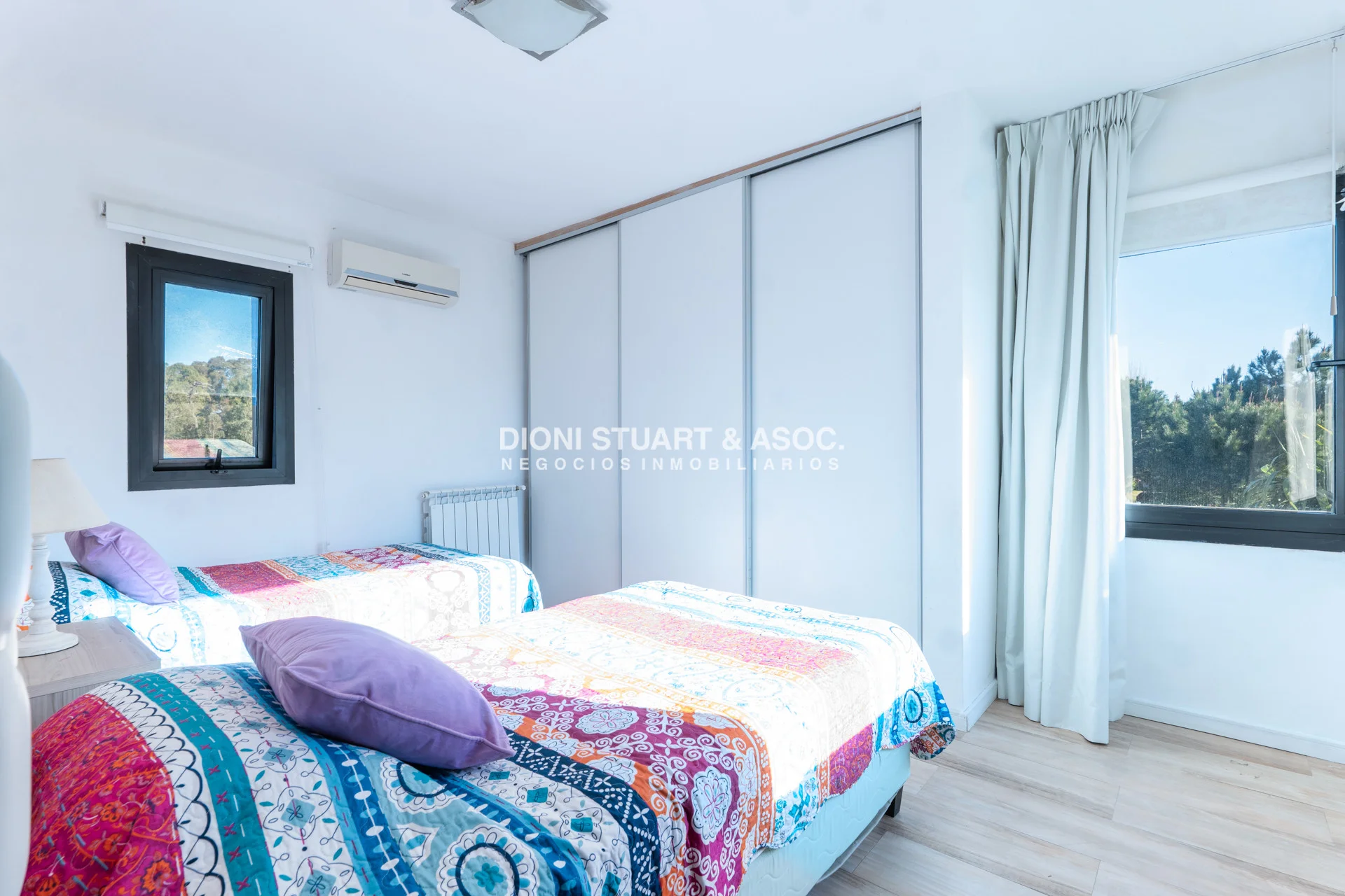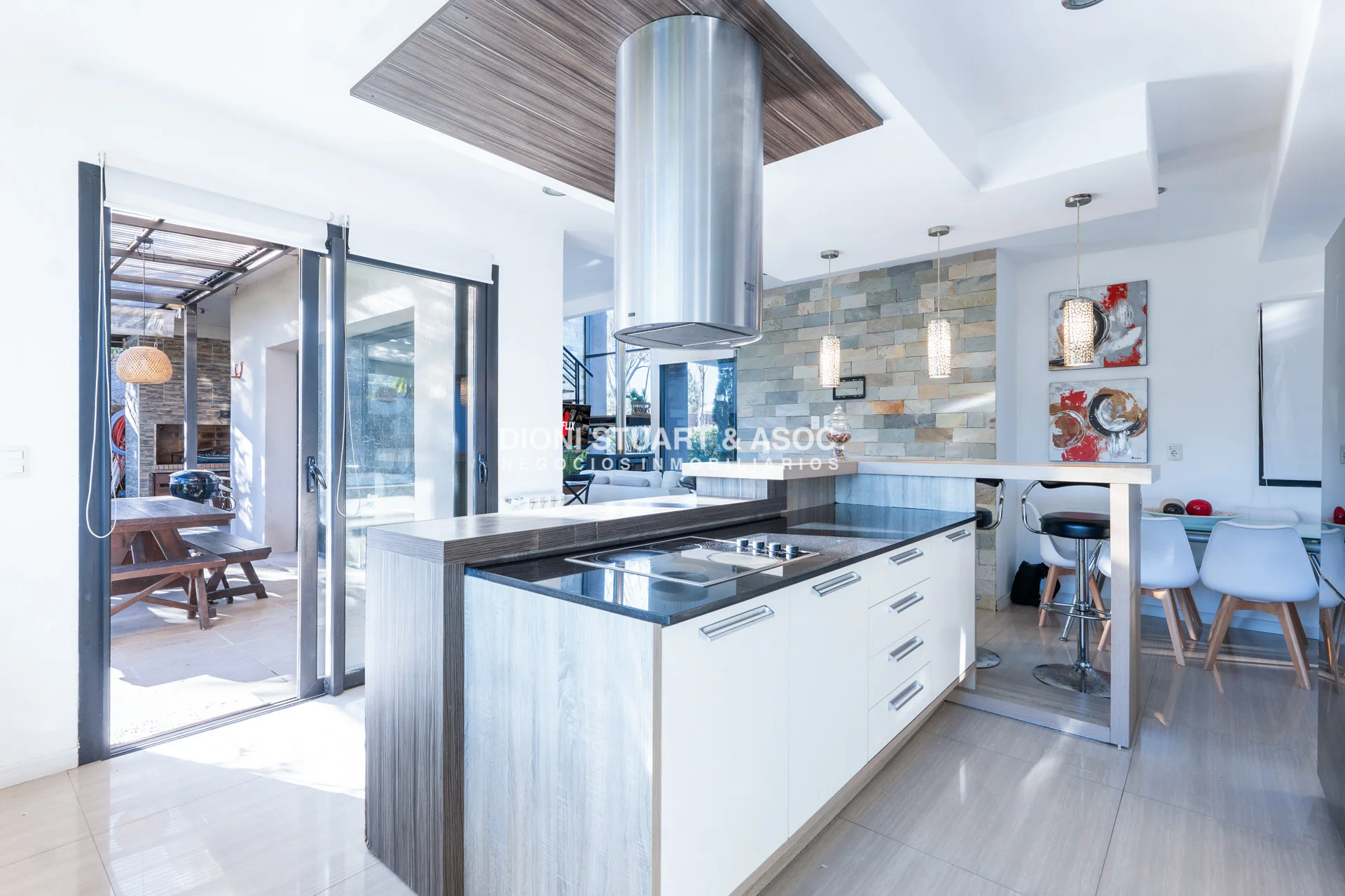 La propiedad consta de dos plantas, en planta baja un amplio living-comedor con hogar a leña, aire acondicionado, y amplios ventanales de en doble altura que permiten la entrada de luz natural todo el día, cocina estilo americana con barra y isla americana, totalmente equipada, con vistas al jardín. A demás, en planta baja encontramos dormitorio con placares empotrados, ante baño y baño. En el segundo piso, encontramos un dormitorio tipo oficina con dos camas de 1 plaza, ideal para niños o invitados, un segundo dormitorio con placard, y el dormitorio principal en suite con walk-in closet. Es importante destacar que en todo su interior a demás de tener Aires acondicionados también cuenta con paneles en pared que funcionan con gas, ideales para mantener la casa en un clima perfecto durante el invierno.