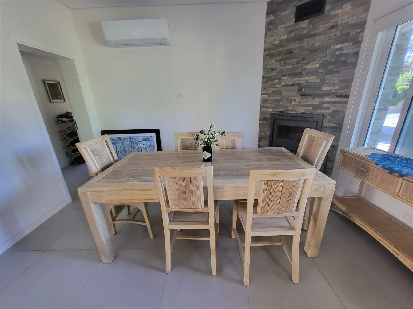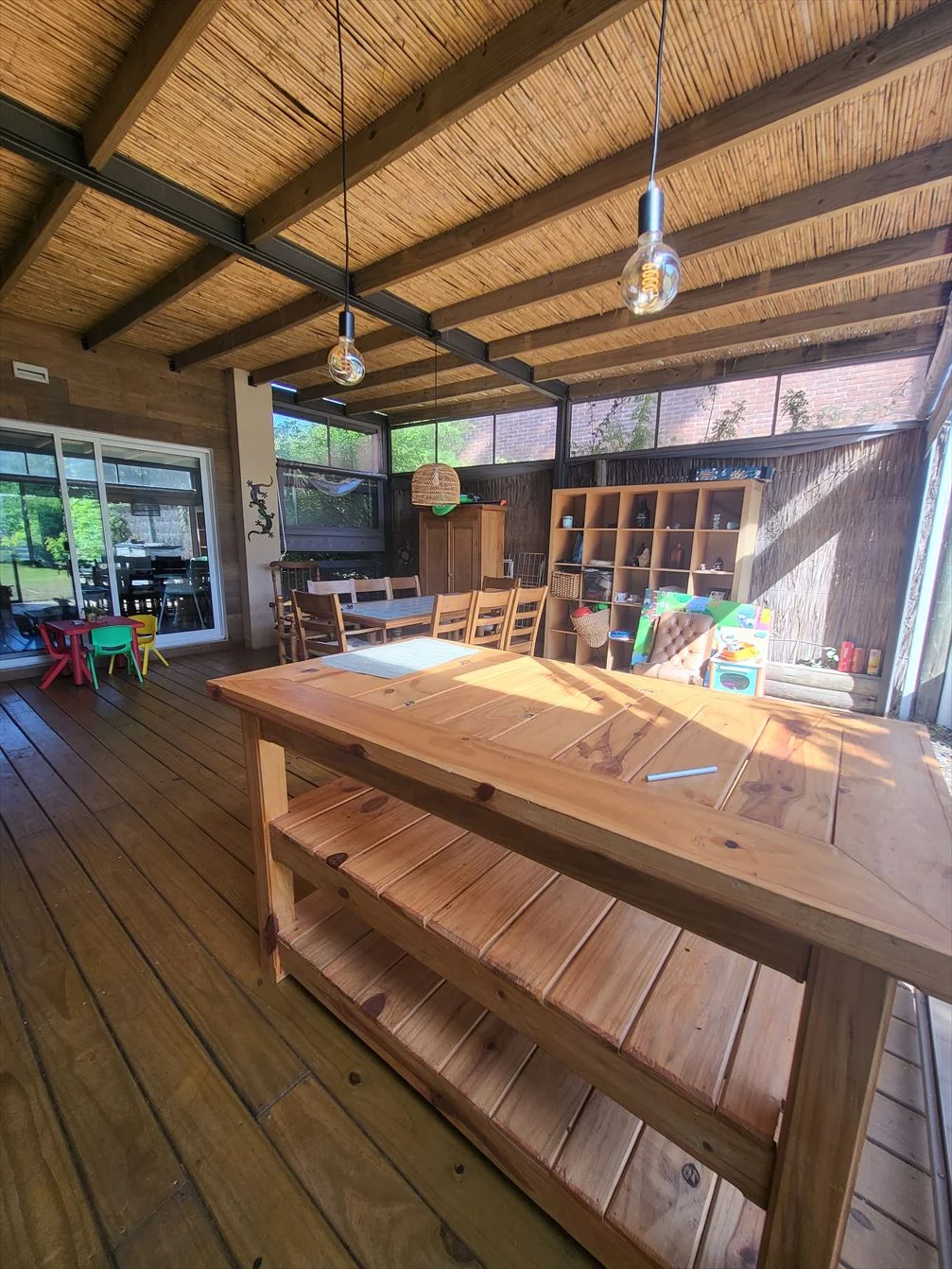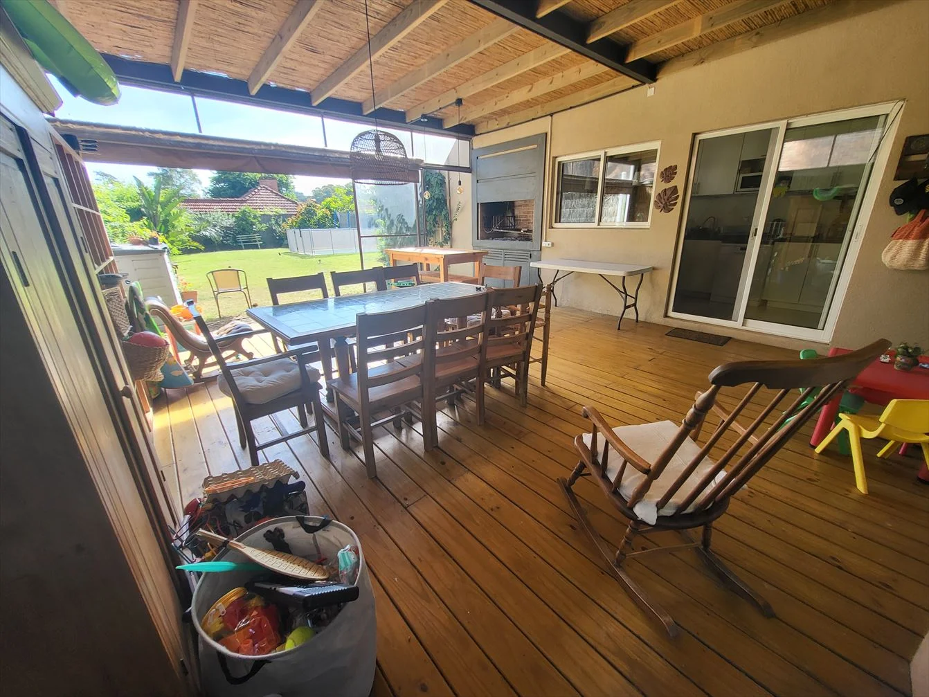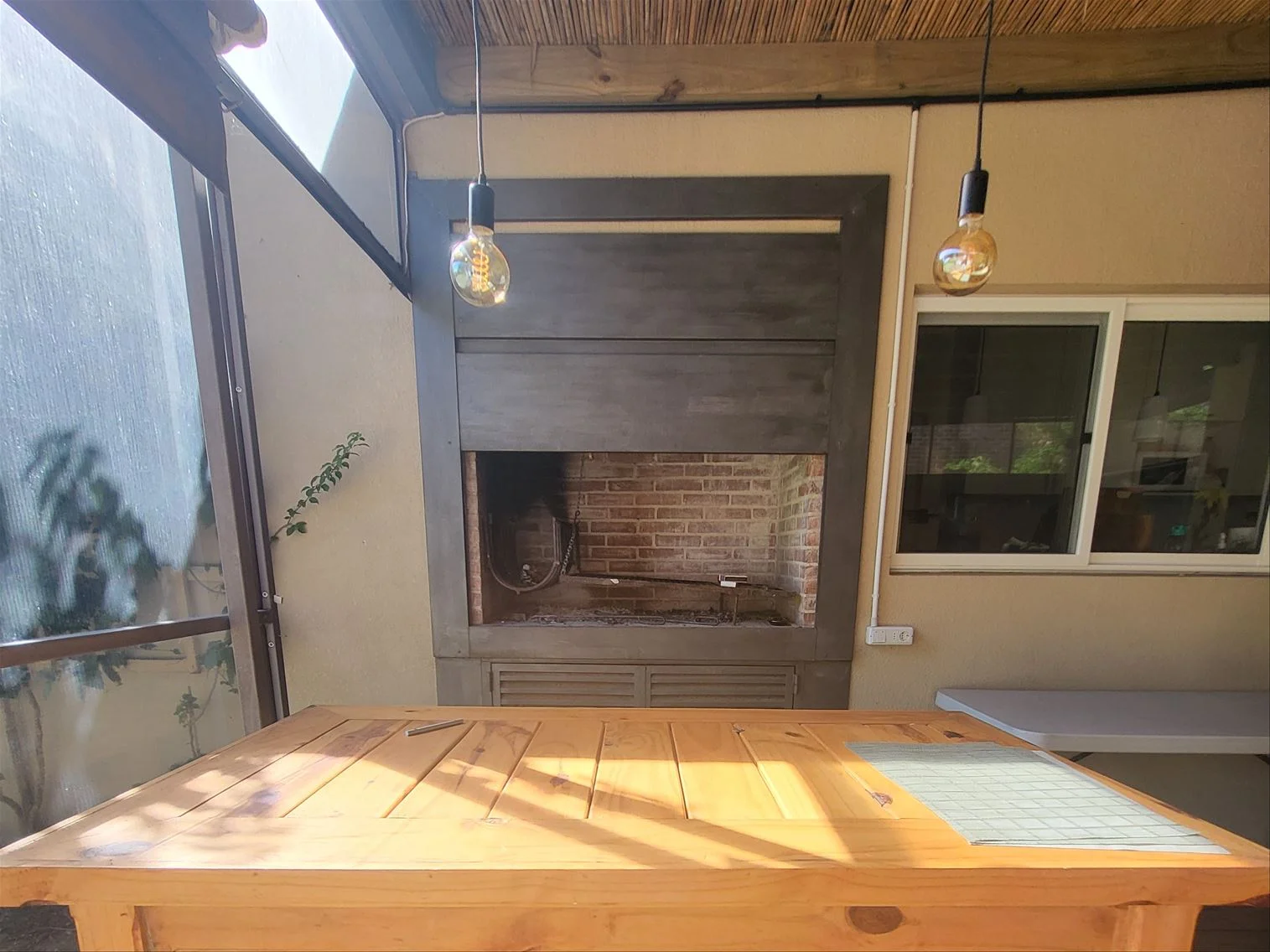 Living comedor con estufa a leña, gran barbacoa con parrillero.