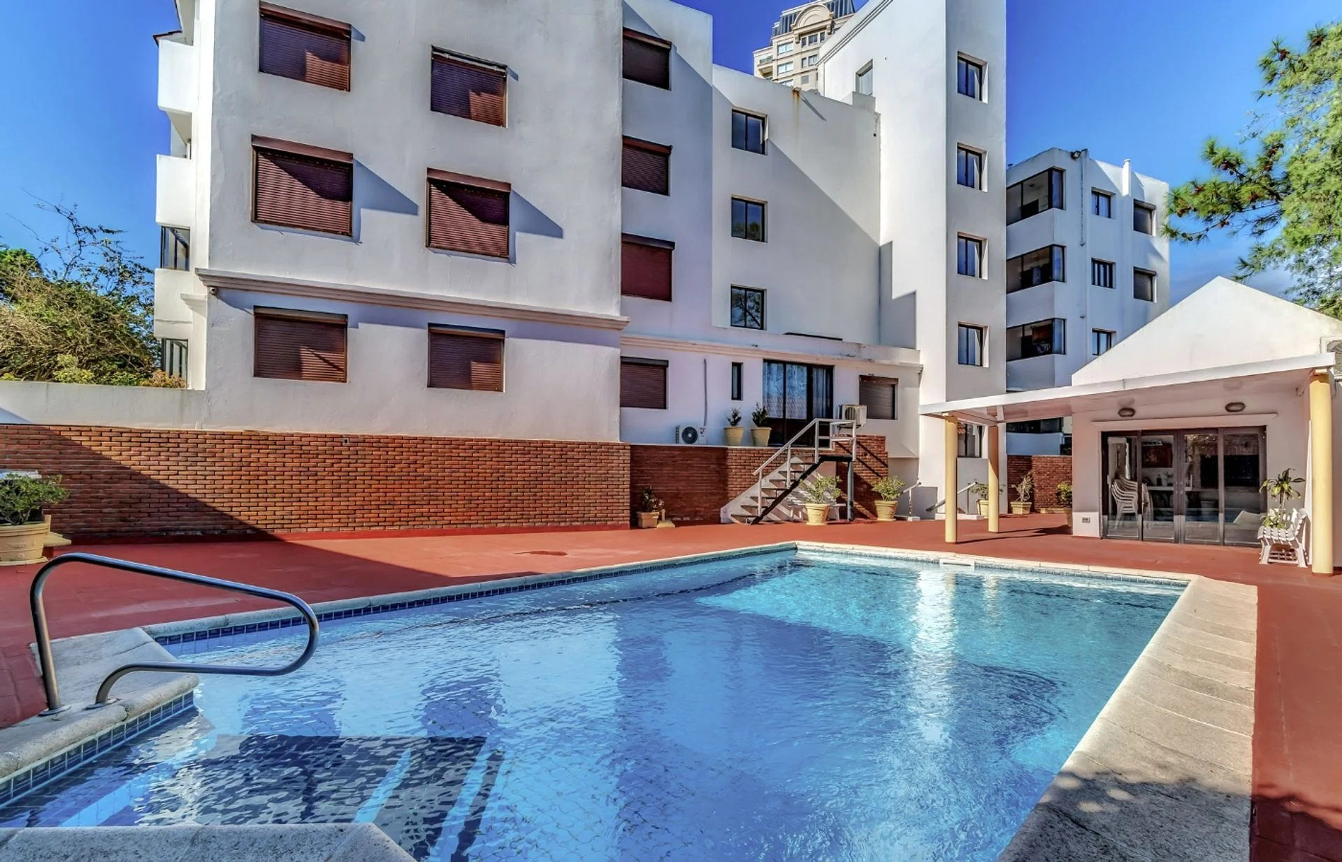 Barbacoa común, piscina climatizada, servicio de mucama, portería y ascensor.