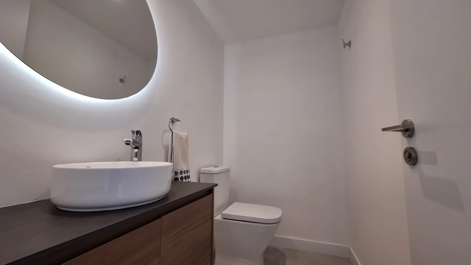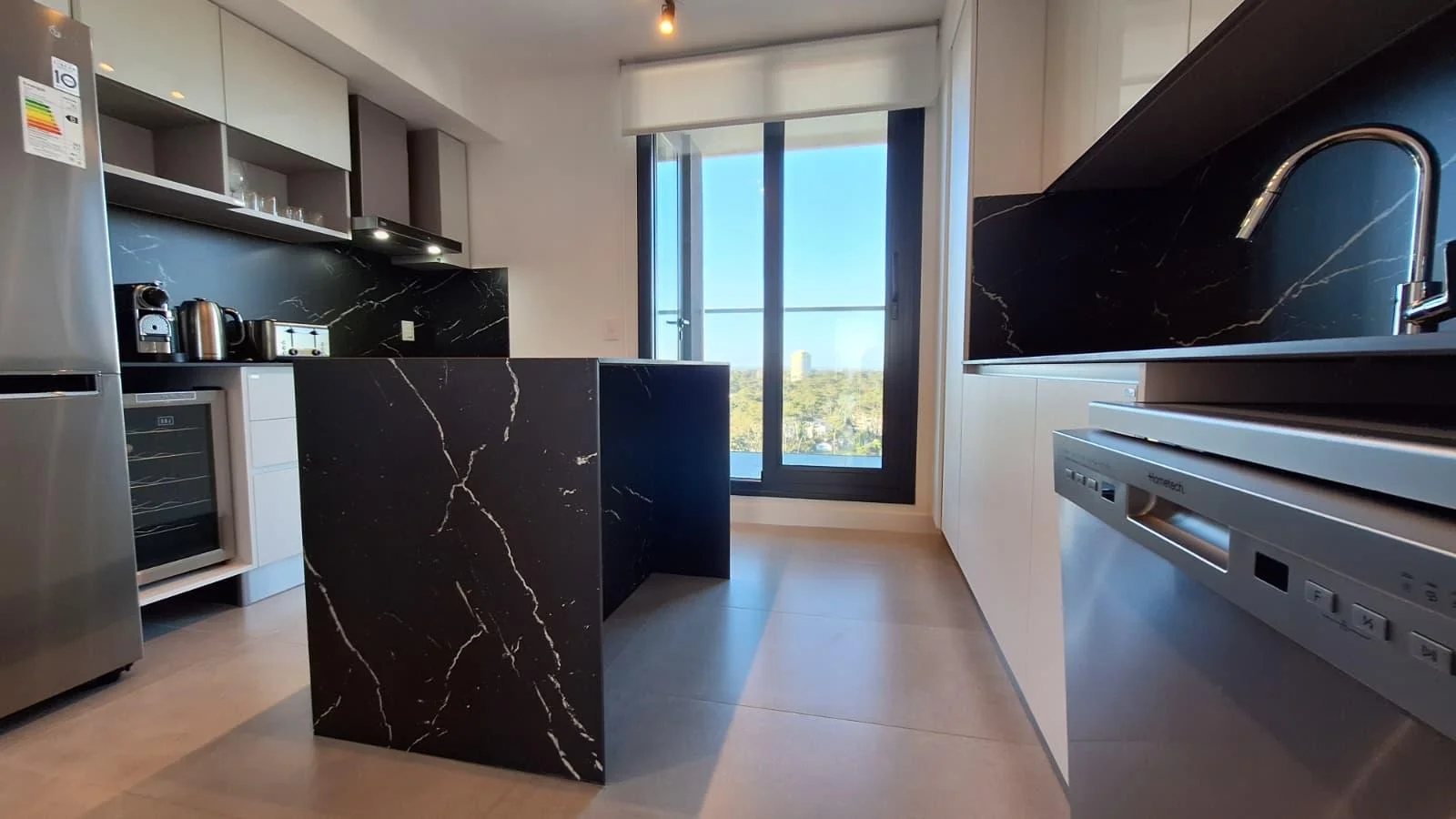 La unidad cuenta con dos amplios dormitorios en suite, toilette para visitas, living comedor con salida a balcón y una cocina totalmente equipada.