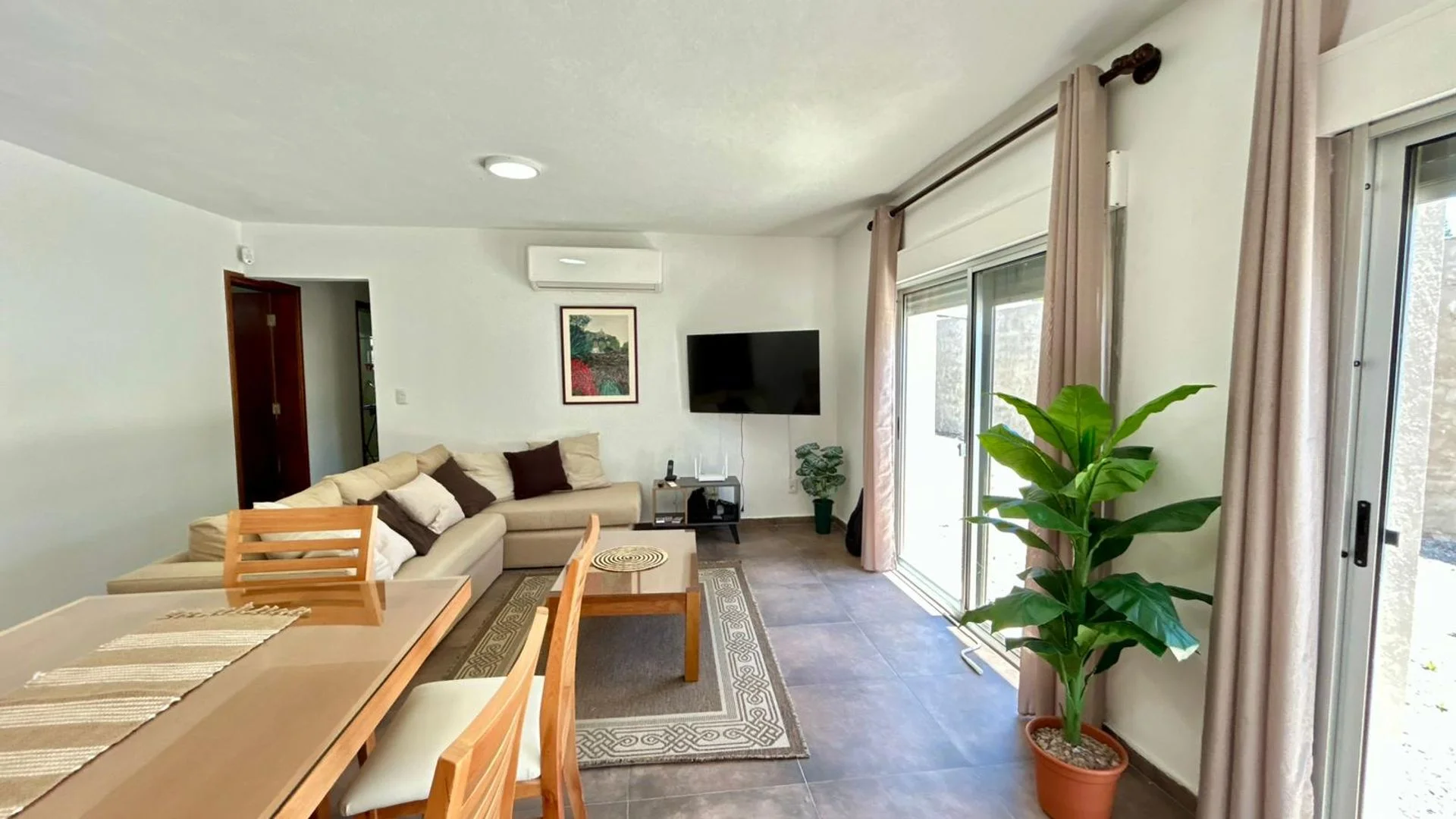 En planta baja se distribuye un amplio living comedor con aire acondicionado, cocina integrada totalmente equipada con horno eléctrico, anafe, lavarropas, secarropas y todos los utensilios necesarios para facilitar el día a día. También dispone de un dormitorio con cama matrimonial, aire acondicionado y dos baños completos.