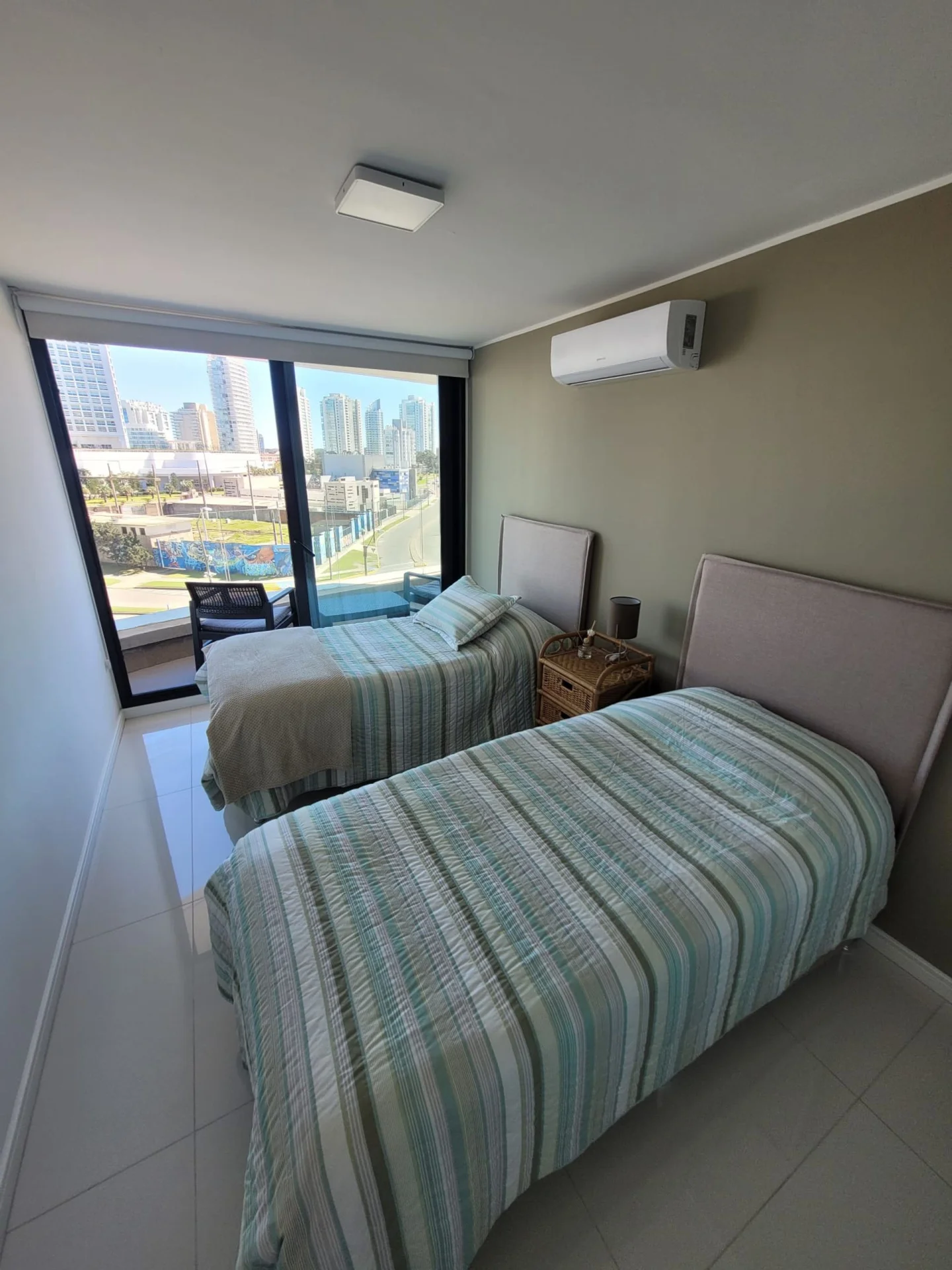 Suite principal con balcón integrado. Segundo dormitorio con 2 camas single.