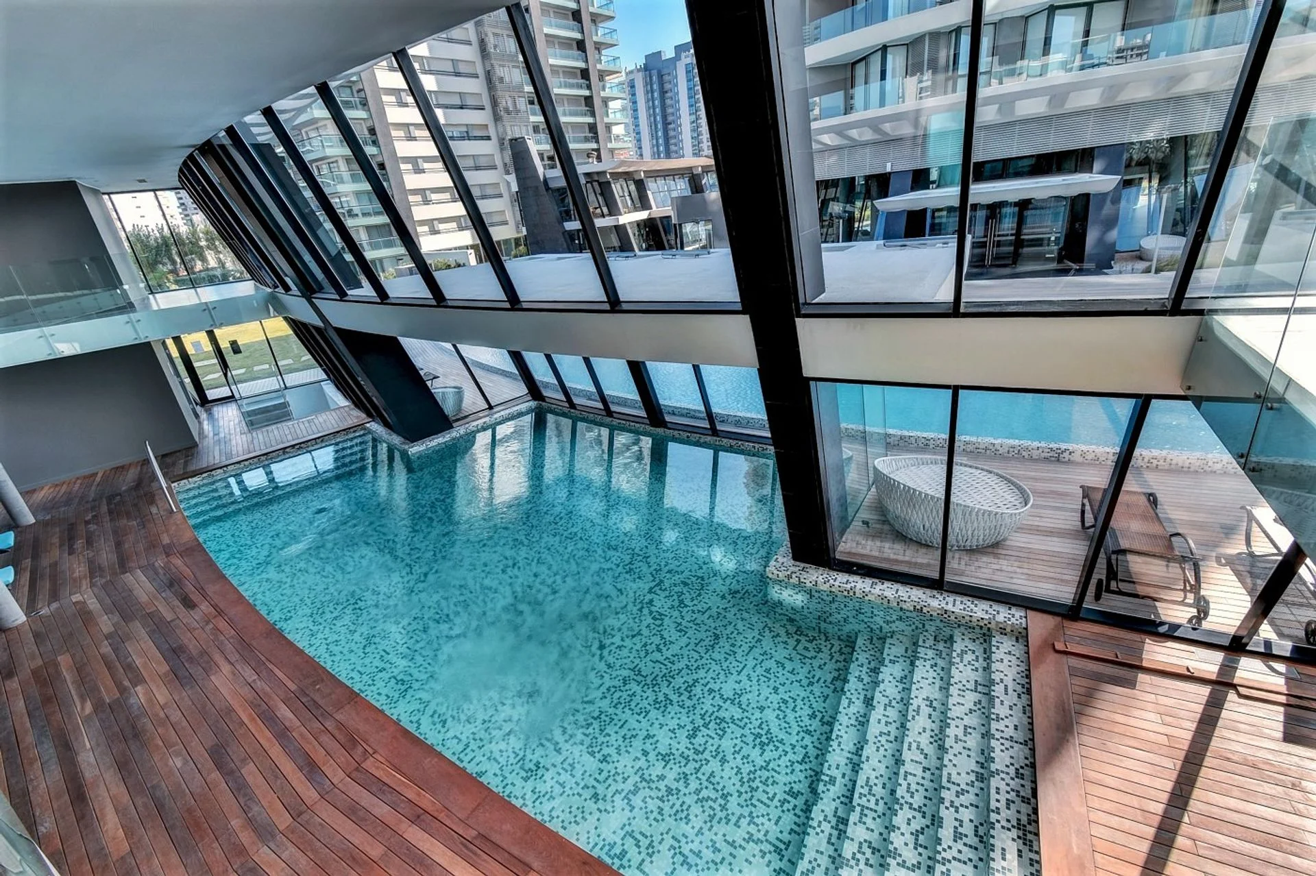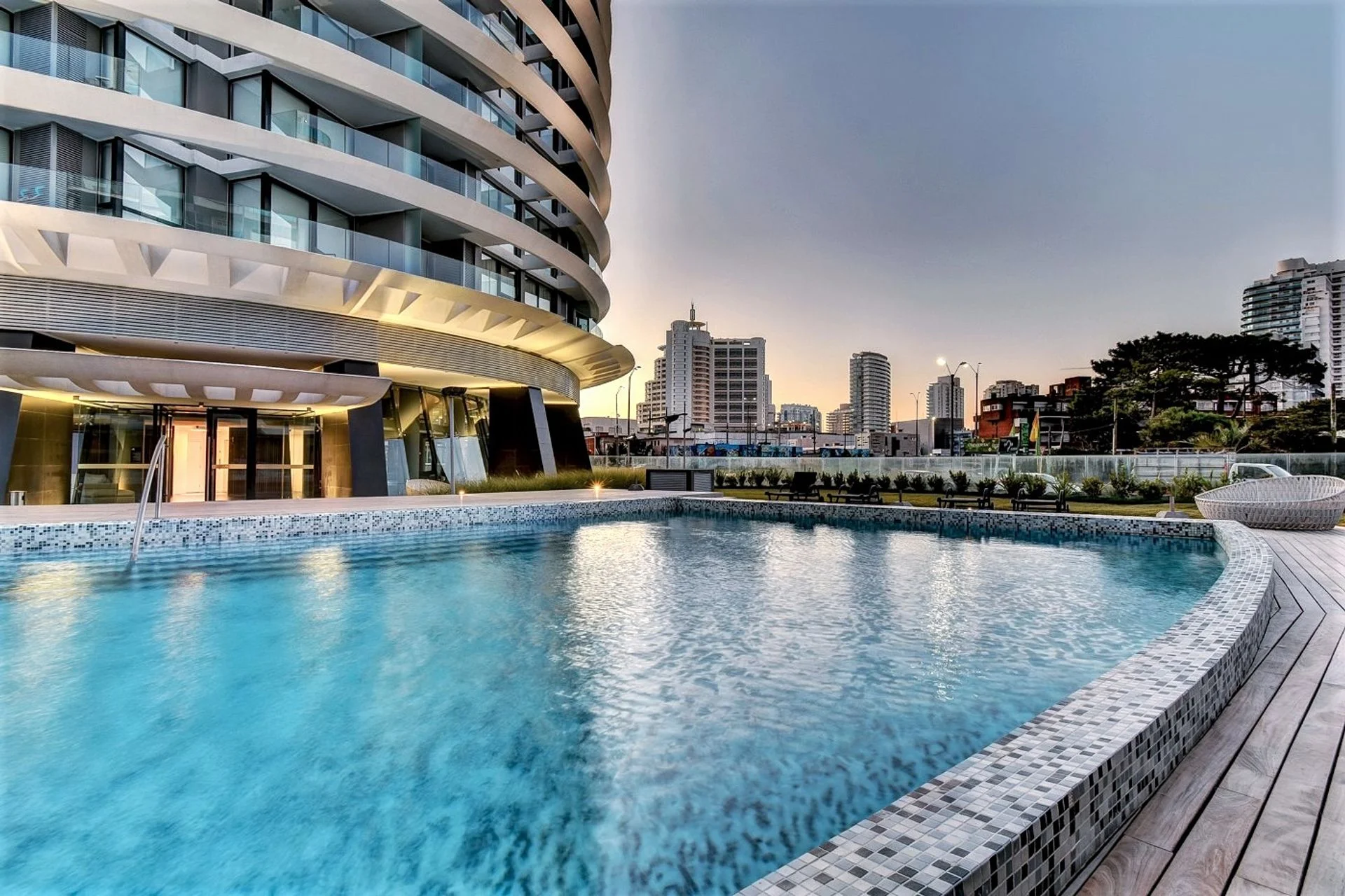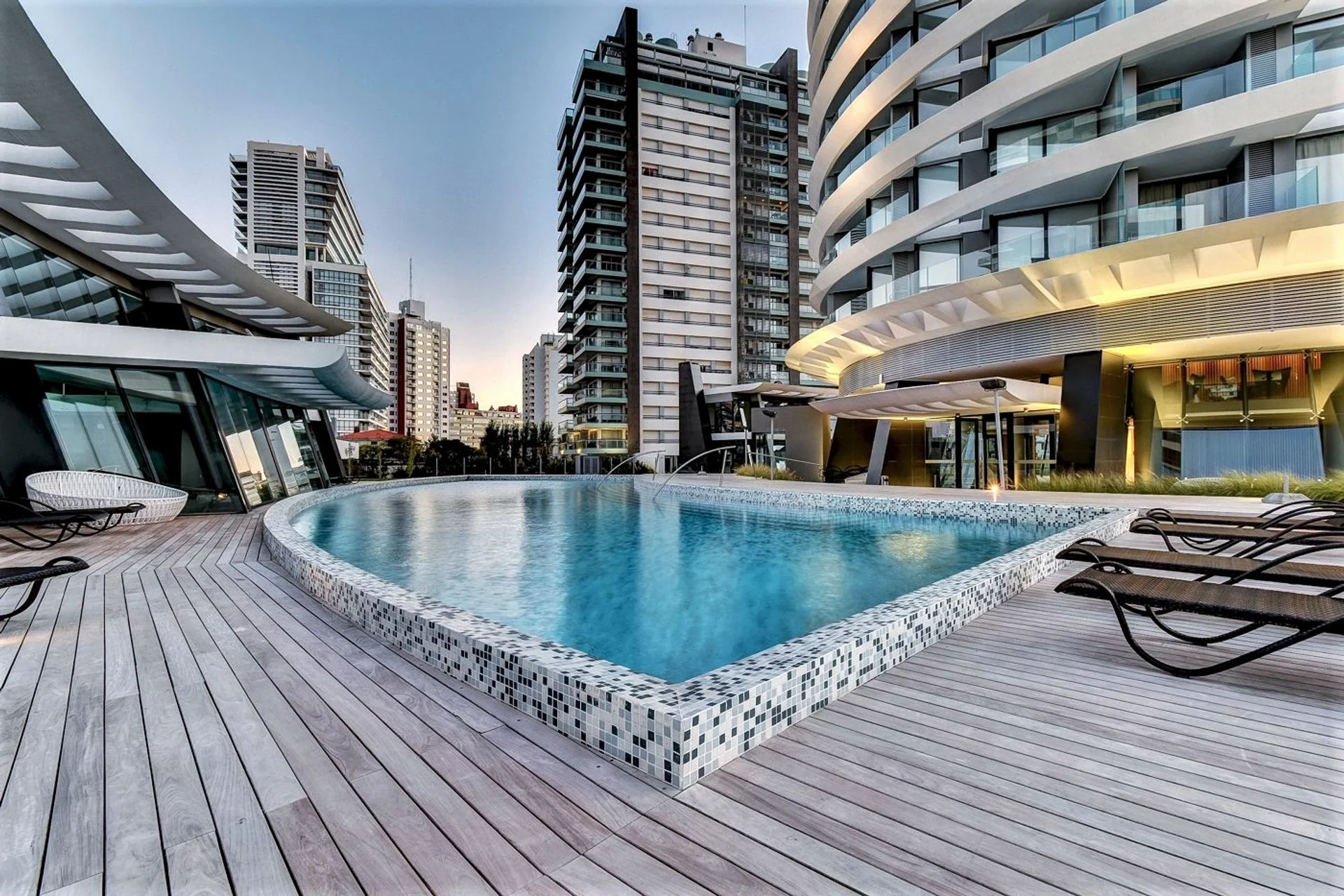 El edificio cuenta con servicio de portería 24 hs., laundry, piscina cerrada climatizada, piscina exterior, servicio de playa, sauna, jacuzzi, gimnasio, sala de juegos para niños, barbacoa y en el piso 23 un área de rooftop con una vista de 360.