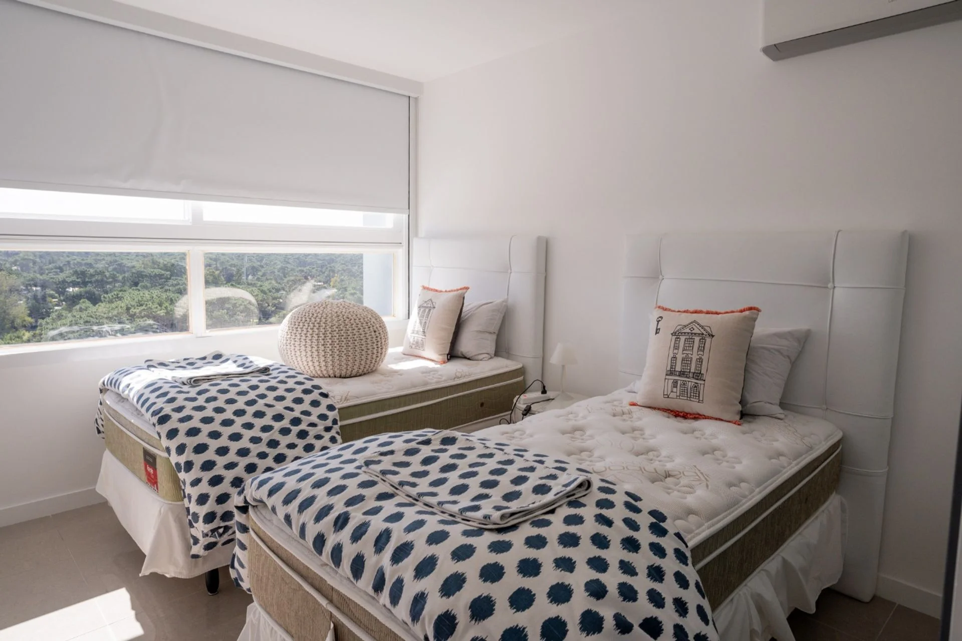 El apartamento cuenta con muebles y terminaciones de primer nivel, diseñados para brindar confort y elegancia. Cada dormitorio está equipado con baño en suite, asegurando privacidad y comodidad para todos los residentes.