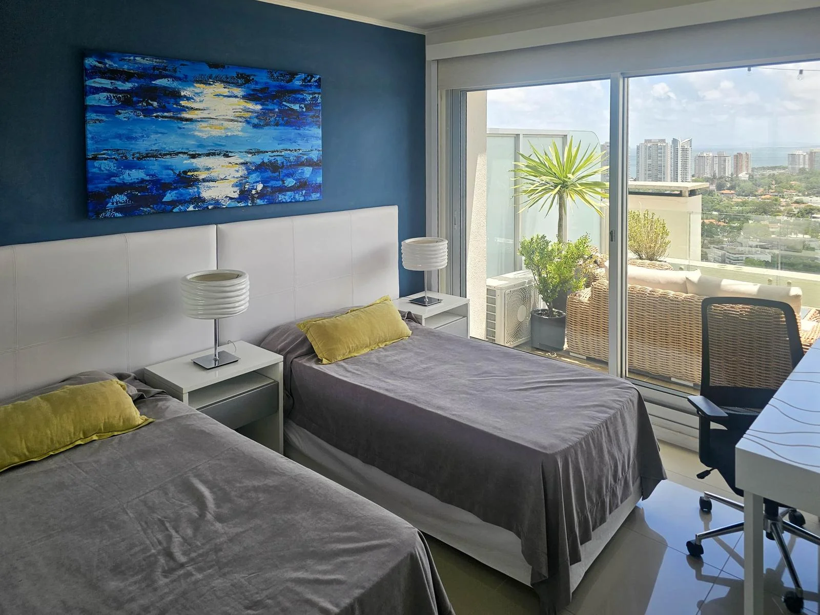 Ubicado en el icónico edificio WIND Tower, este espectacular penthouse redefine el concepto de elegancia y confort en Punta del Este. Diseñado para alojar hasta seis personas, cuenta con dos amplias camas king, dos camas individuales y una distribución que prioriza la comodidad con tres baños compartimentados con bañera y un toilette adicional, ideal para el disfrute y relajación de toda la familia.